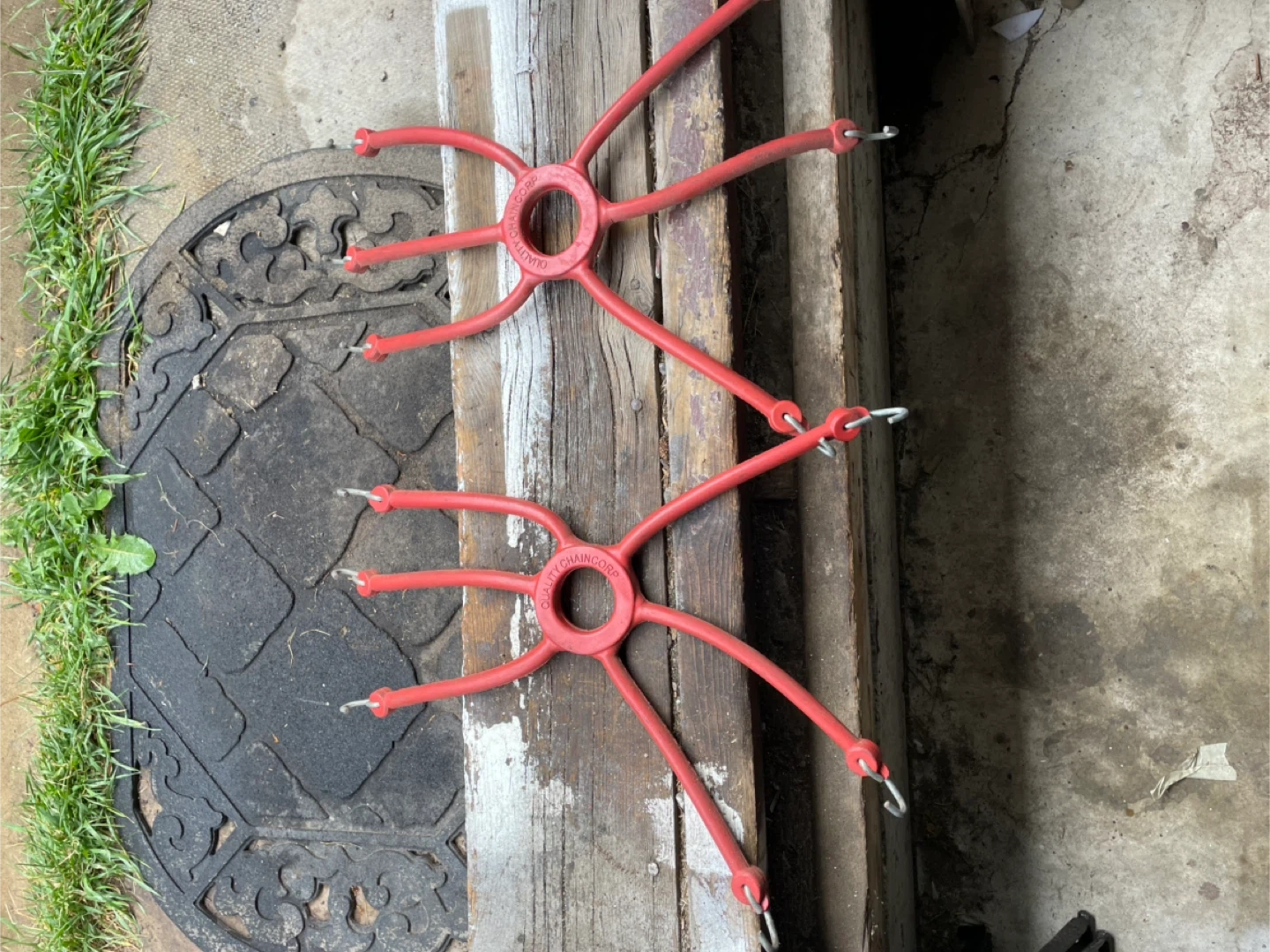 These are Qualitex Chain-Up tire chains! They appear to be in good condition and ready to help you tackle snowy roads. Perfect for winter driving!