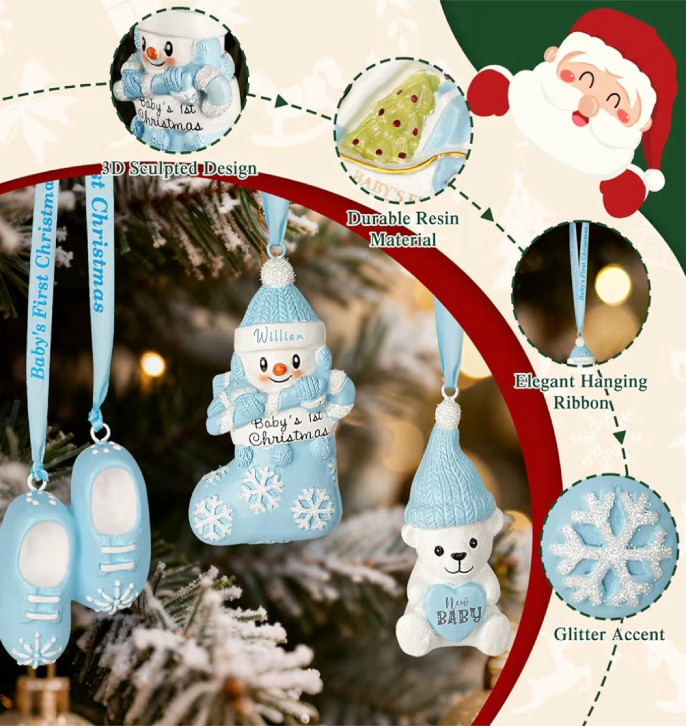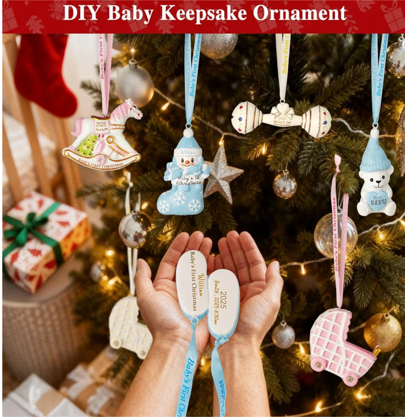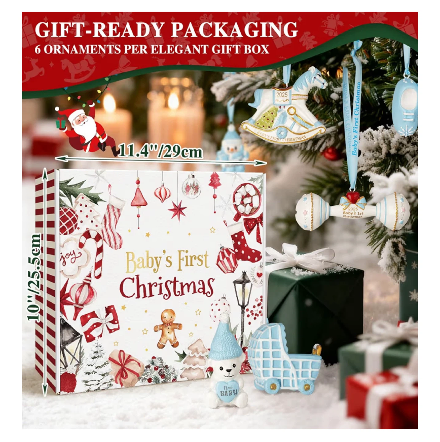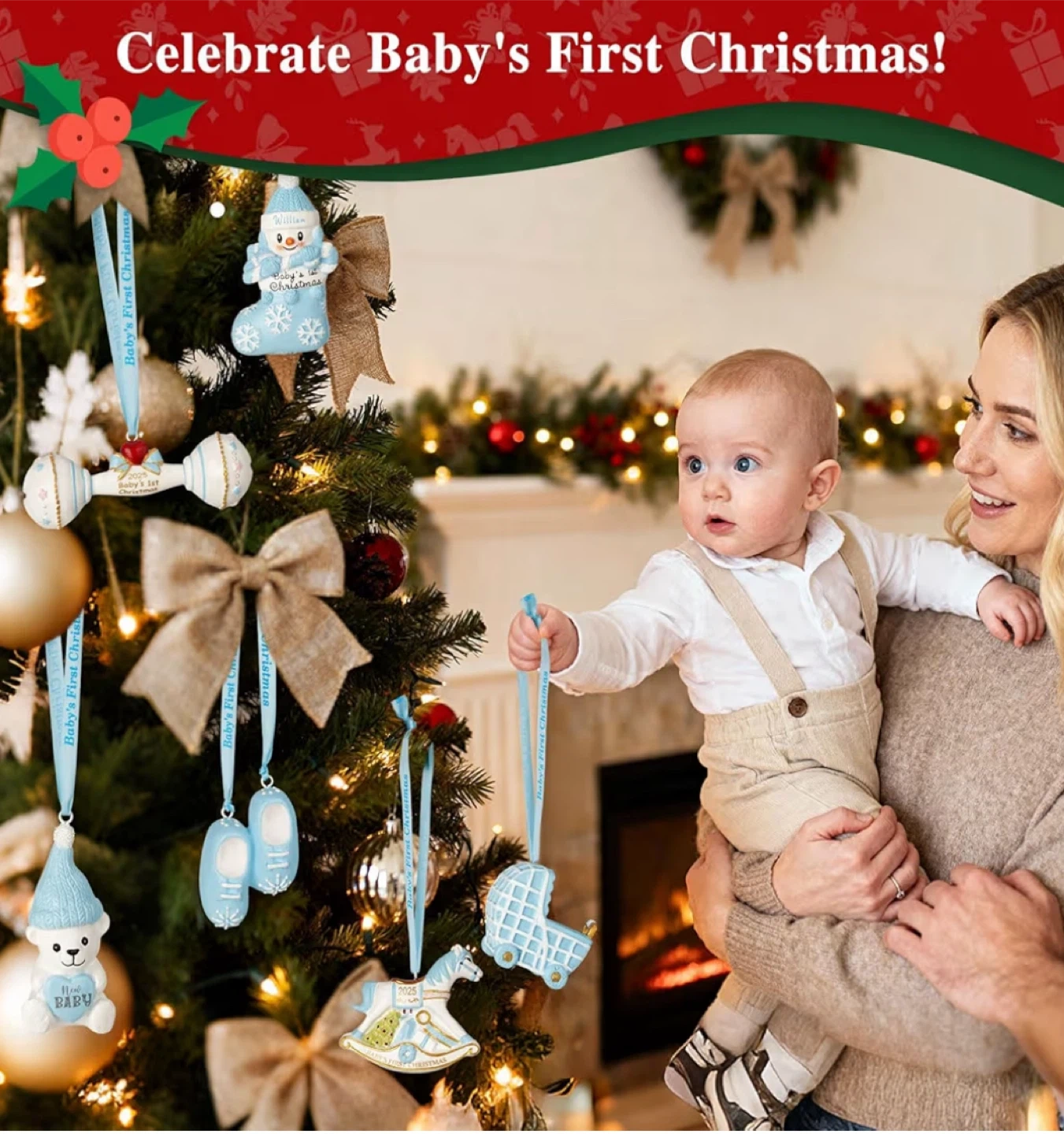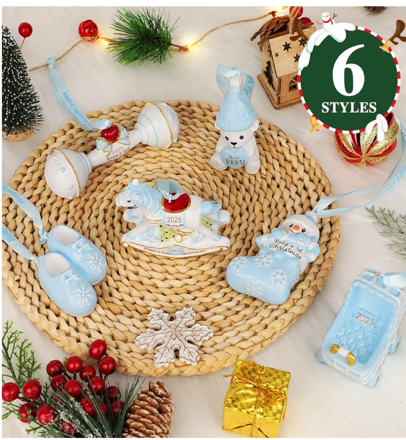Get ready to celebrate baby's first Christmas with this adorable ornament set!