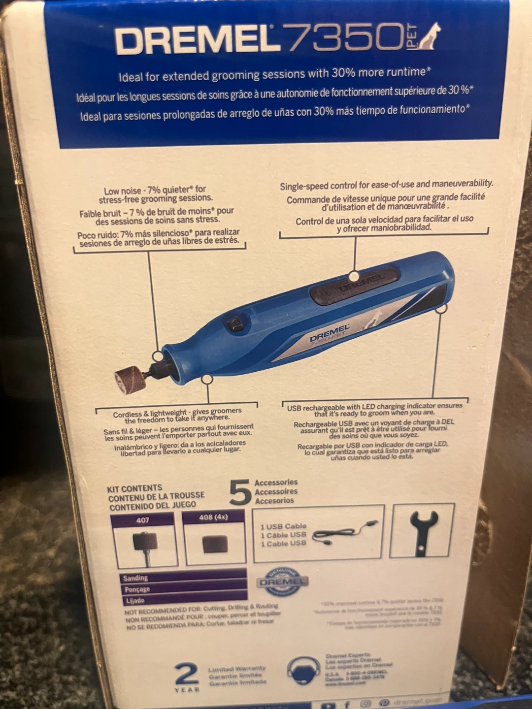 Perfect condition, very barely used Dremel nail groomer. Perfect for trimming small to extra large dog nails. A good alternative to clippers.