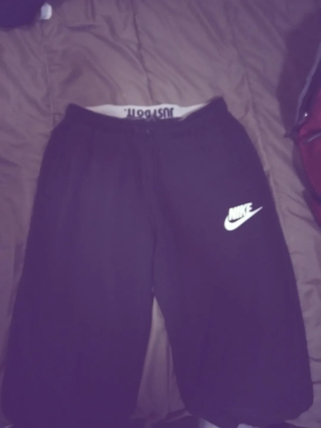 Selling a pair of black Nike shorts. They're in good condition and feature the classic Nike swoosh logo. Perfect for workouts or casual wear!