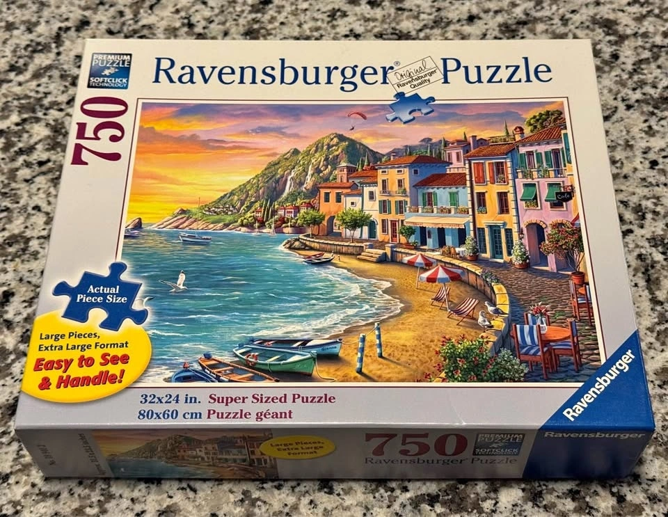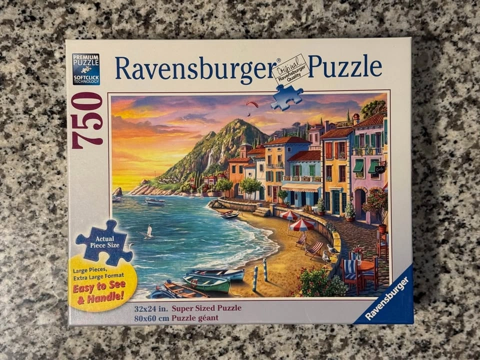 Selling Ravensburger puzzle - Romantic Sunset (750 Pieces). This puzzle has large pieces and an extra large format. It has been opened and completed only ONCE.