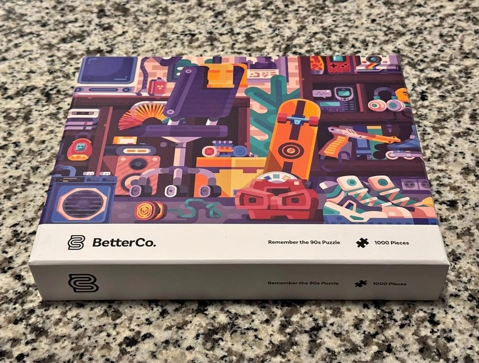 Buy & SellBetterCo. Puzzle - Remember The 90s (1000 Pieces)BetterCo. Puzzle - Remember The 90s (1000 Pieces)$35Selling BetterCo. puzzle - Remember The 90s (1000 Pieces). It has been opened and completed only ONCE. NO MISSING PIECES. NO DEFORMITIES. NO DAMAGES.WHERE TO MEETCheck LocationView MapSELLERverifiedSafiWedgewood Creek650 reviews0 chats·0 favorites·2 viewsSEND CHAT TO SELLERHi Safi! I’m interested in your listing.Hi Safi! I’m interested in your listing.Get the Karrot app to chatSign In to chat