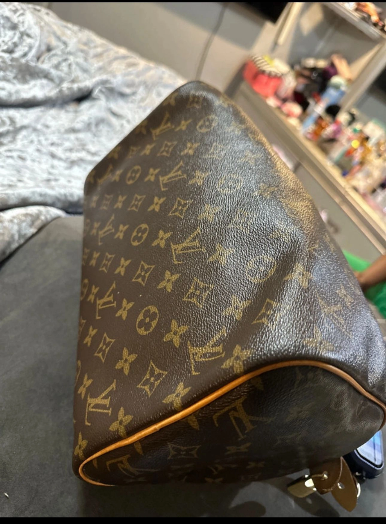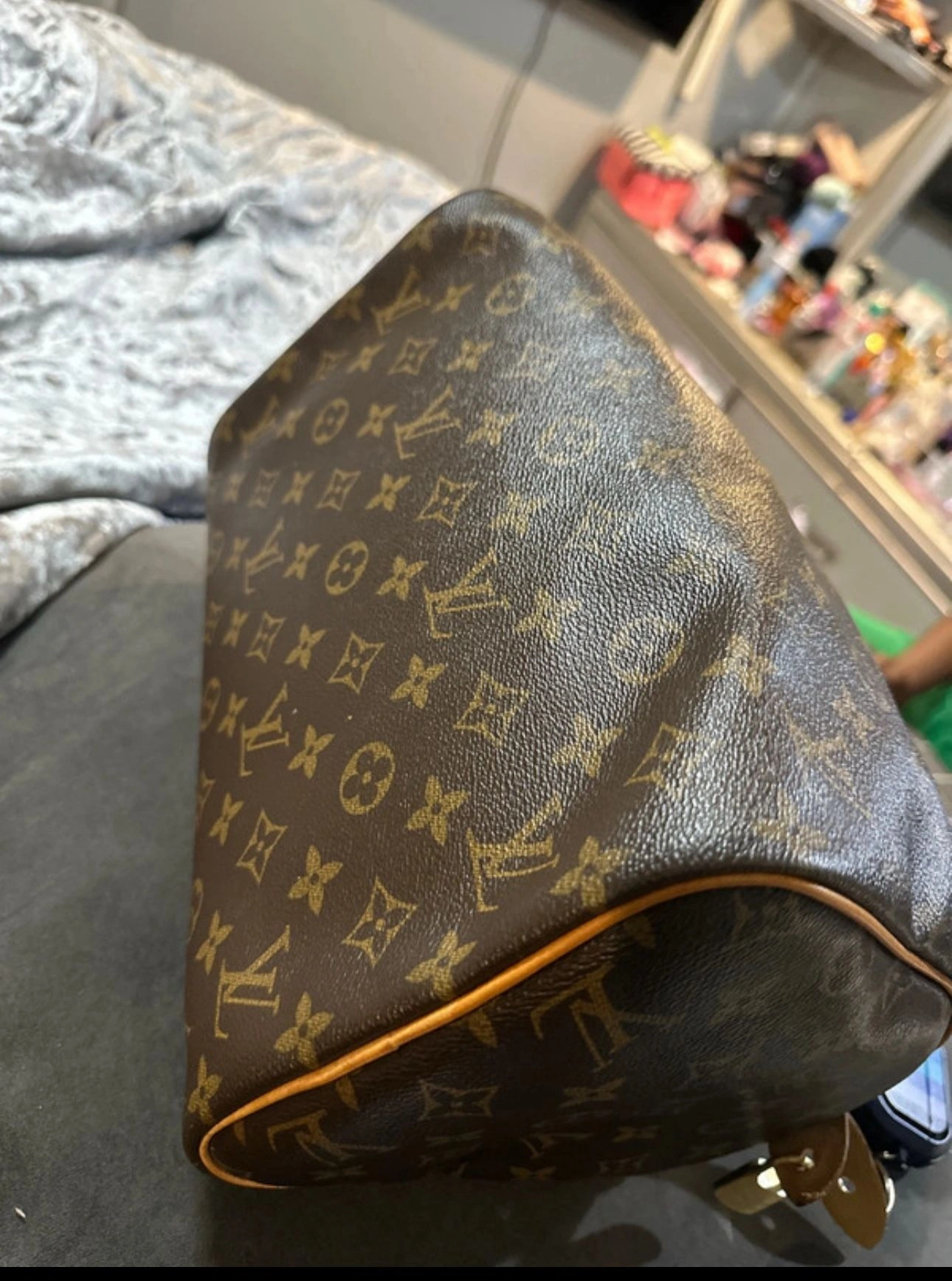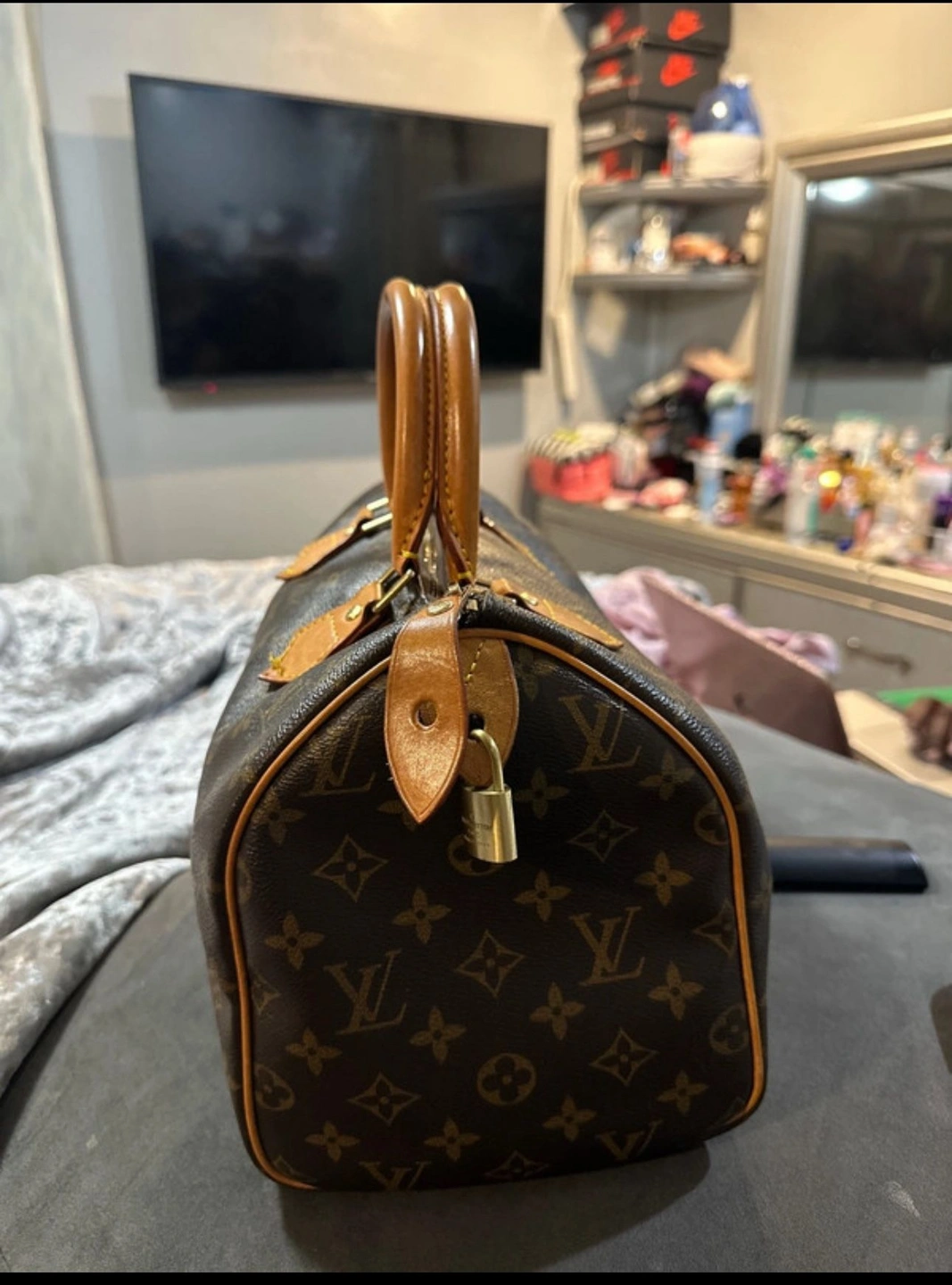 Pre-loved Louis Vuitton Speedy in great condition. Comes with original LV dust bag. Hardware is shiny, edges are clean, and there are no tears or scuffs only a small white mark on the bottom and threading on one of the handles. The bag has been very well looked after — only selling because I’m decluttering.