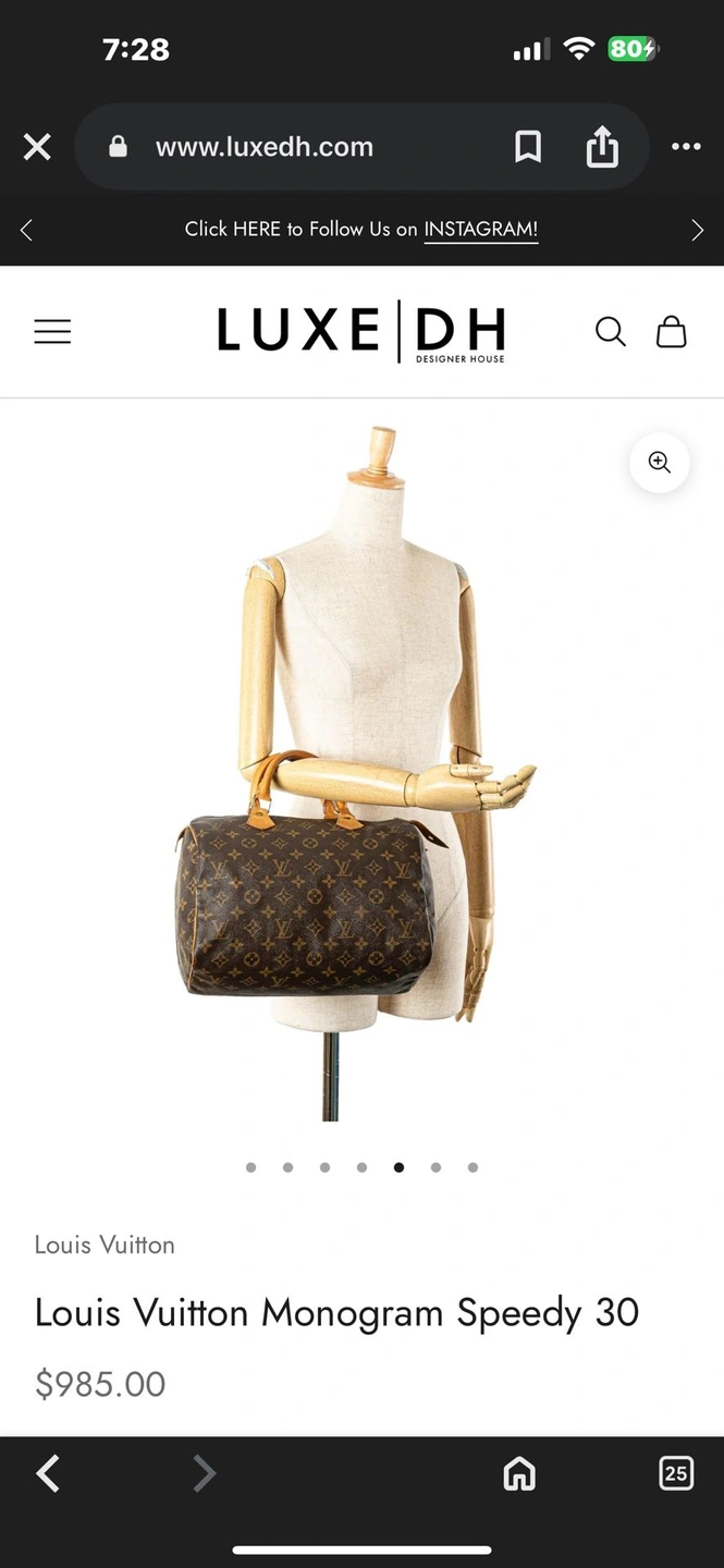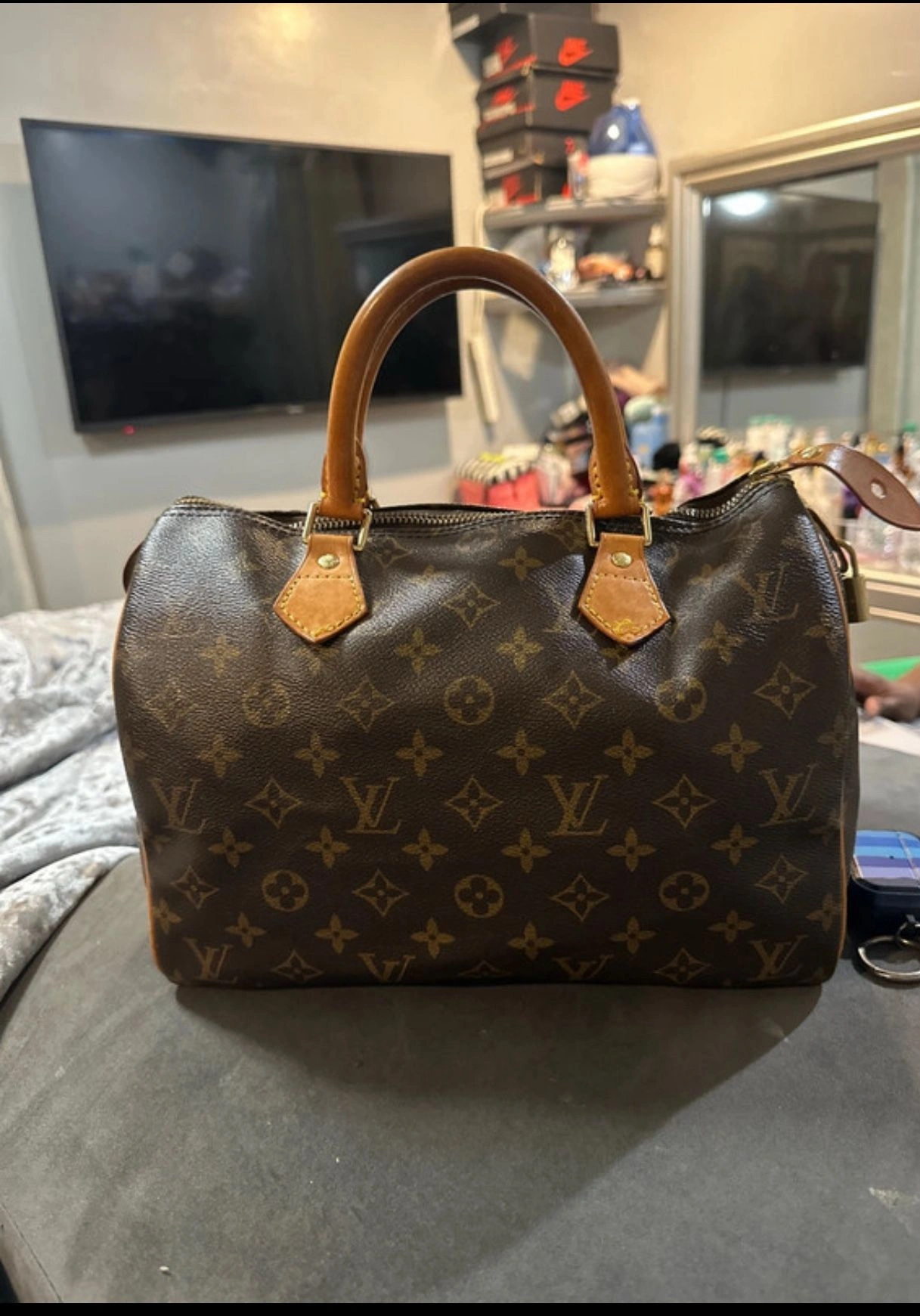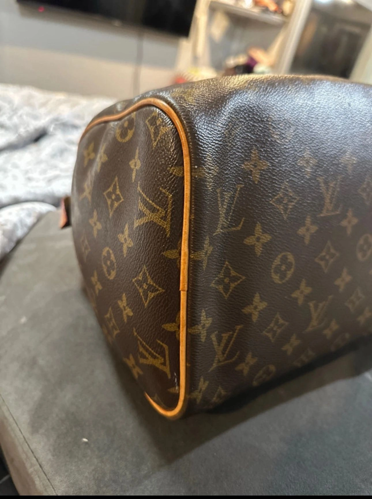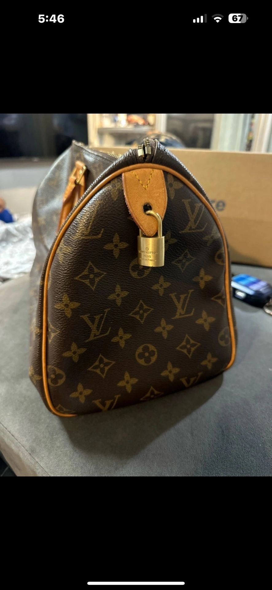 Pre-loved Louis Vuitton Speedy in great condition. Comes with original LV dust bag. Hardware is shiny, edges are clean, and there are no tears or scuffs only a small white mark on the bottom and threading on one of the handles. The bag has been very well looked after — only selling because I’m decluttering.