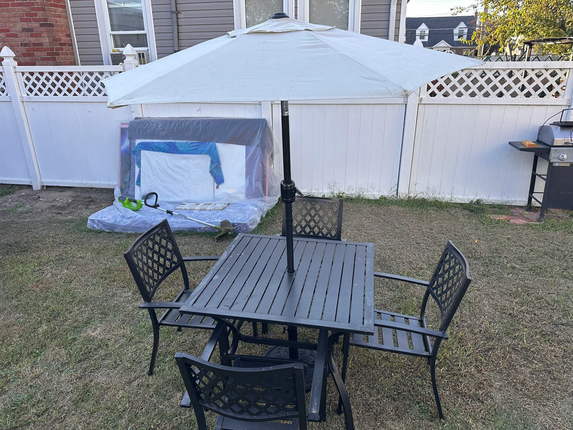 Buy & SellPatio SetPatio Set$200Patio set with a table, 4 chairs, and a complementary umbrella and base stand. In good condition.WHERE TO MEETCheck LocationView MapSELLERverifiedFlipVilleValley Stream620 reviews0 chats·0 favorites·36 viewsSEND CHAT TO SELLERHi FlipVille! I’m interested in your listing.Hi FlipVille! I’m interested in your listing.Get the Karrot app to chatSign In to chat