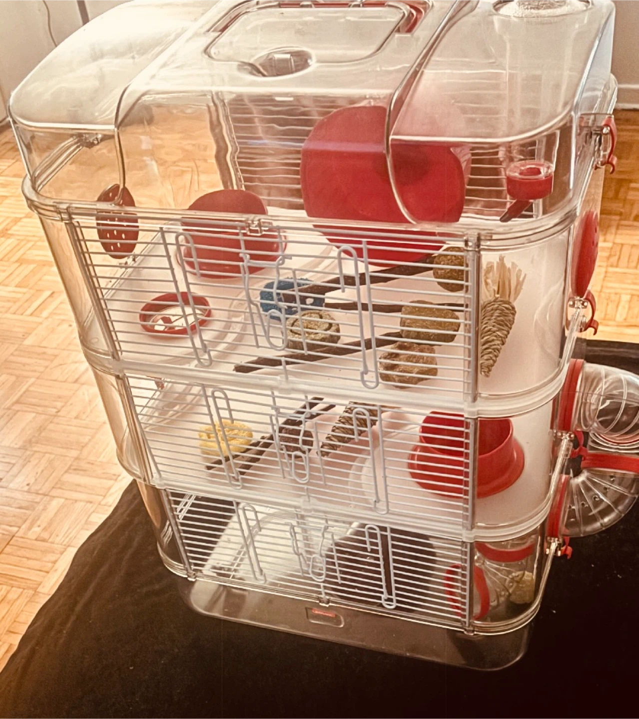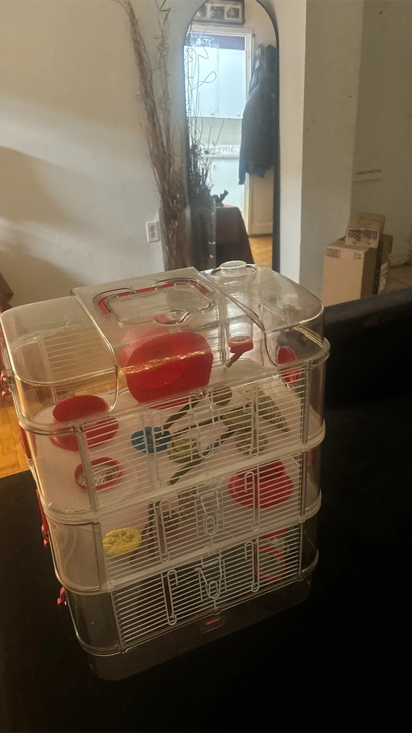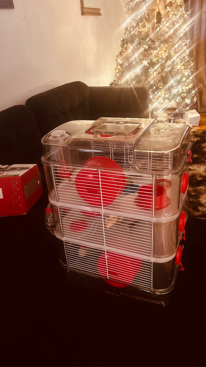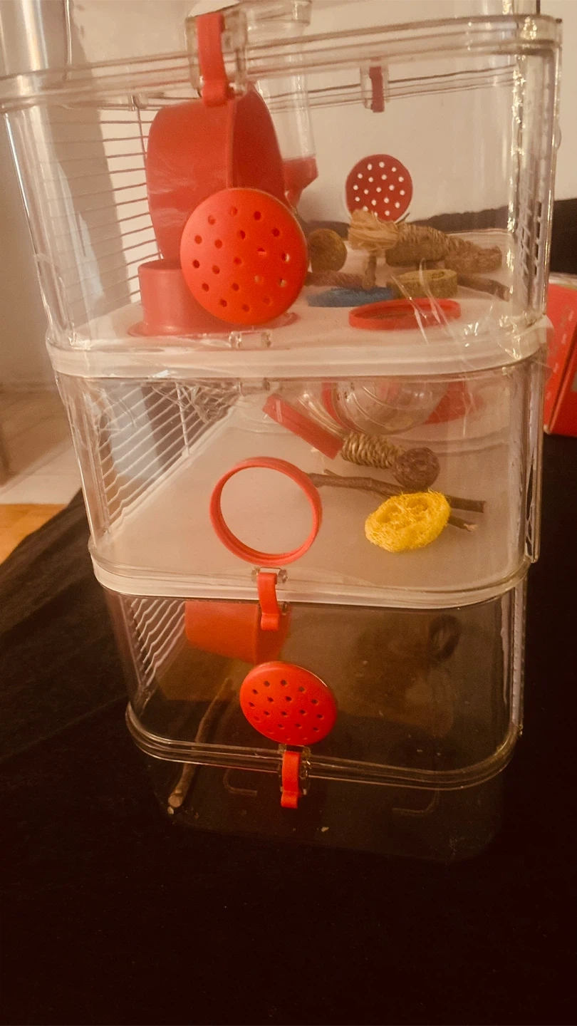 Selling a Rody.3 Trio 3 Story hamster cage! It's in great condition and ready for a new little friend. This cage is perfect for providing a fun and stimulating environment for your hamster. It features multiple levels and accessories. (Never been used)
