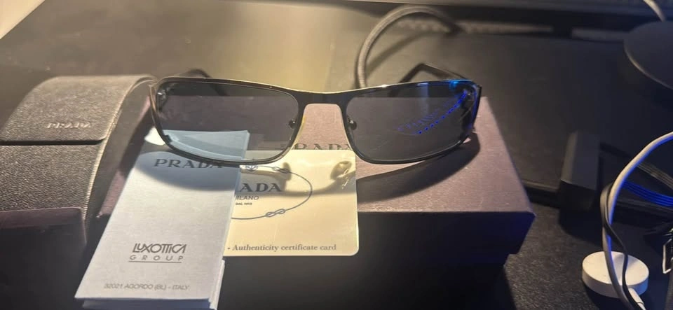 Comes with the box, the case for the glasses, authentication card and the Prada lens cloth.