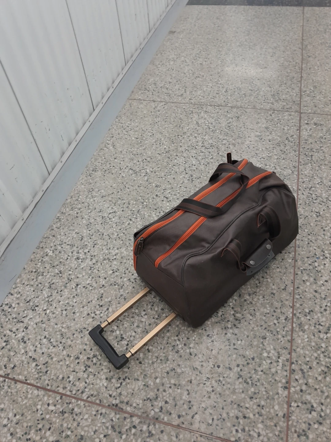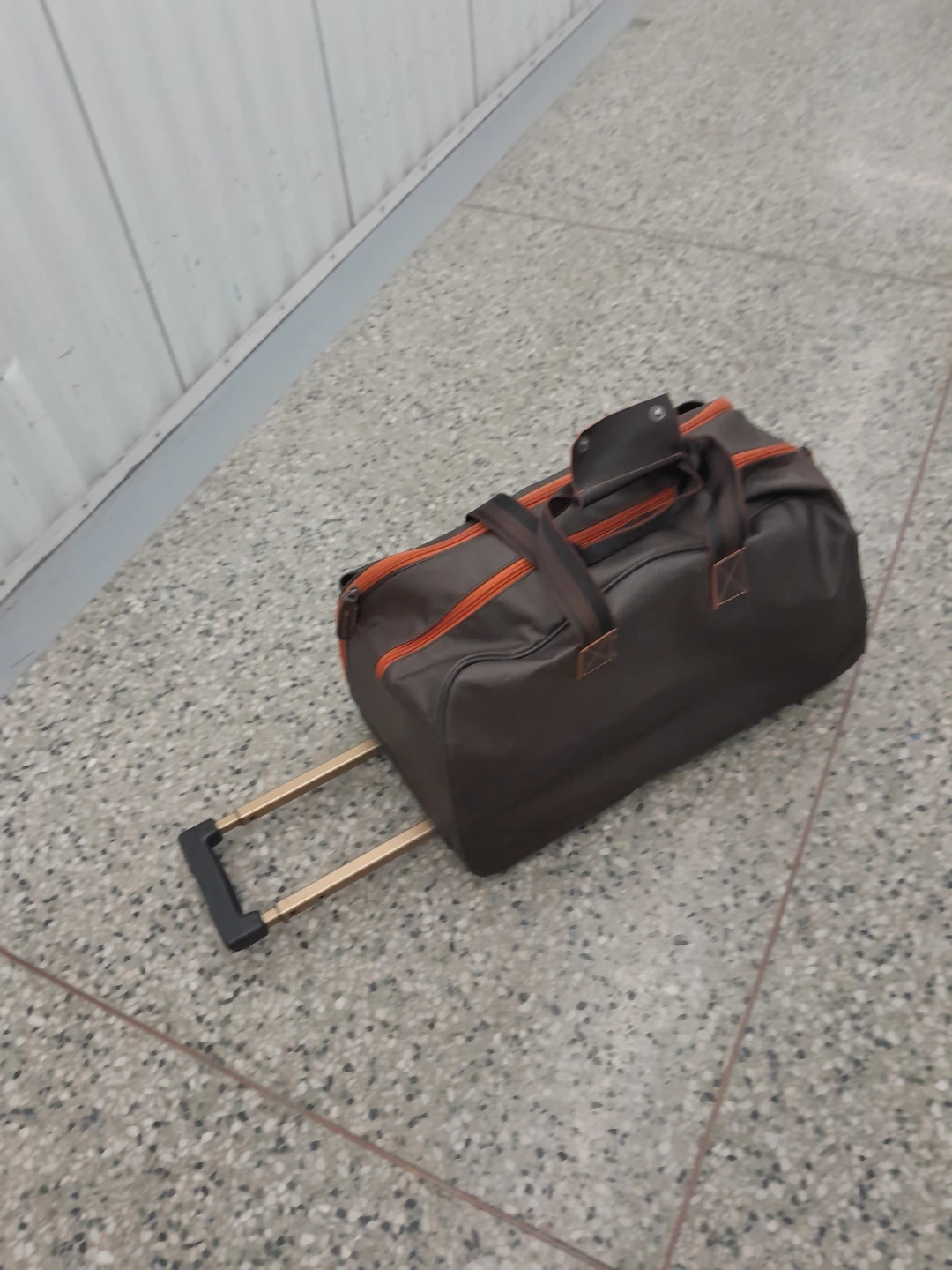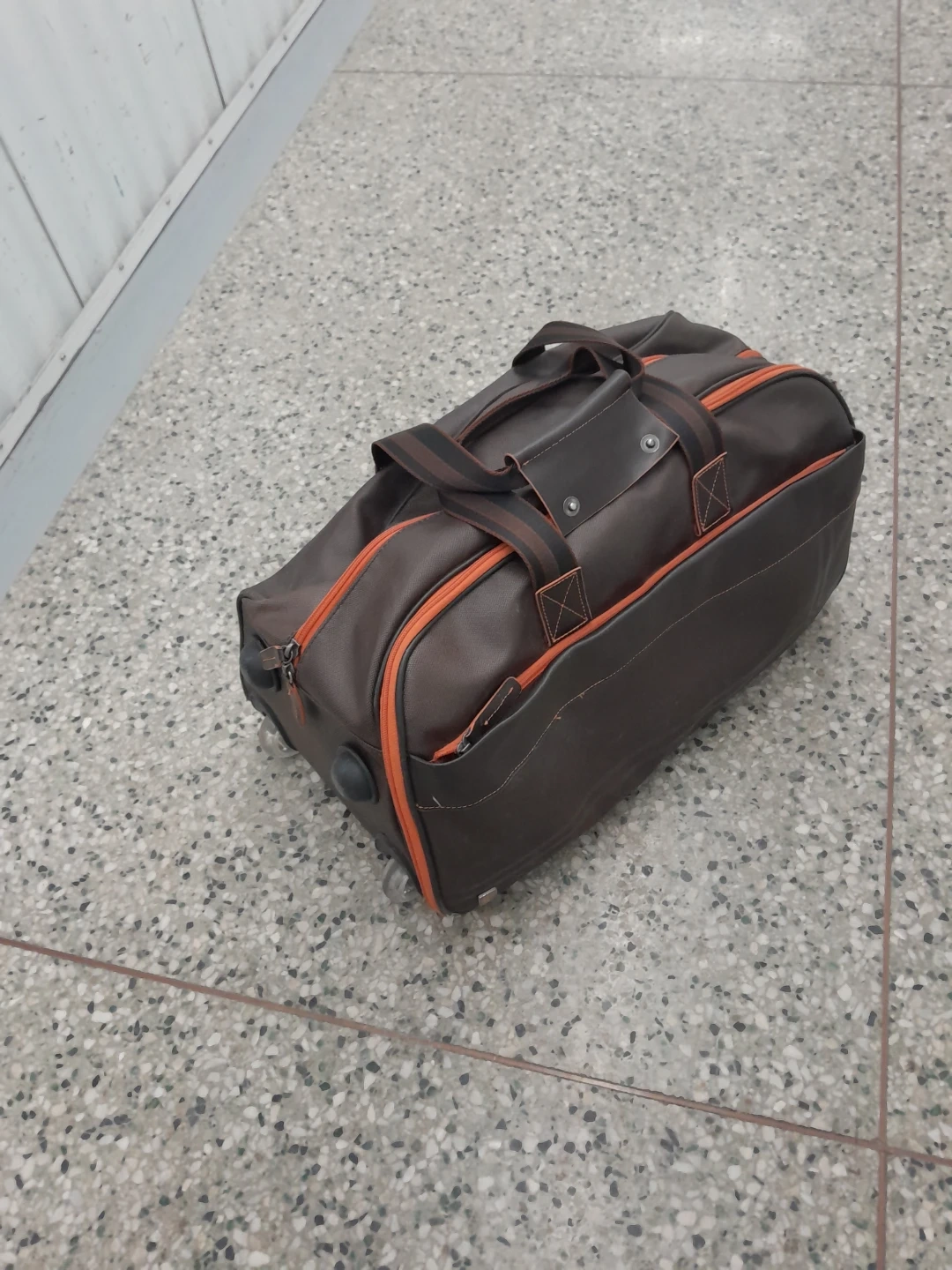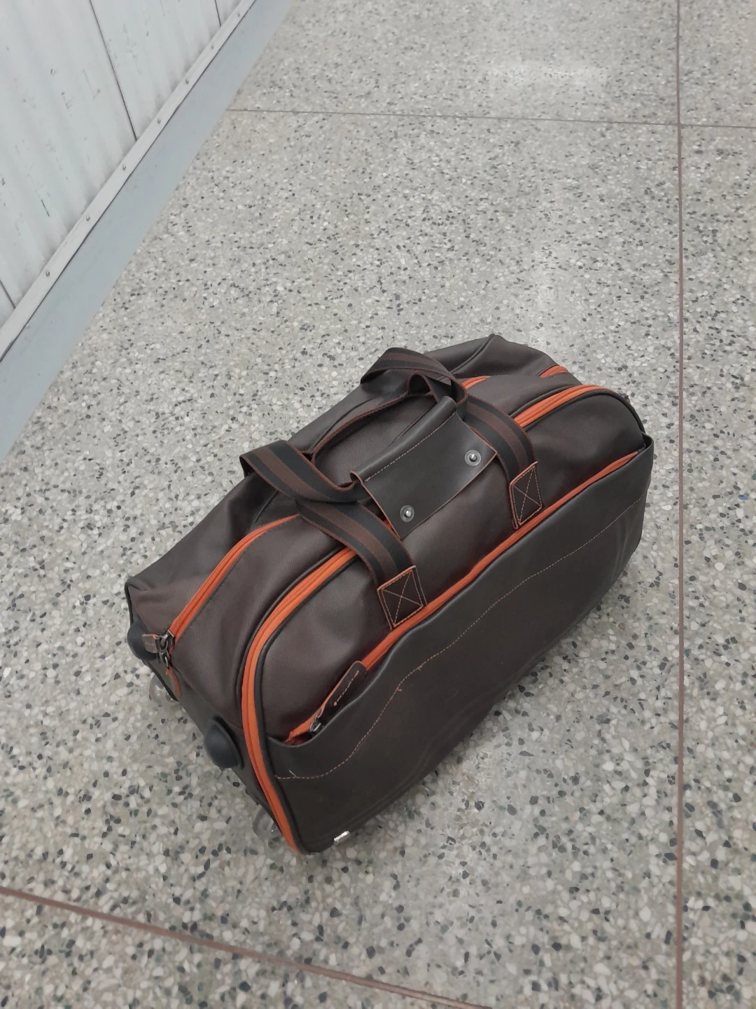 Rolling Duffle Bag - Brown with Orange Trim