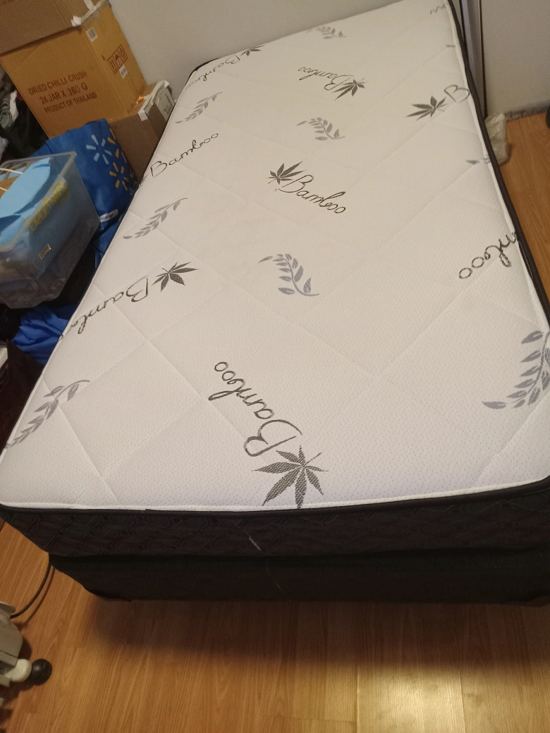 Bamboo Mattress. Comes with box spring and bed frame for 60.00.