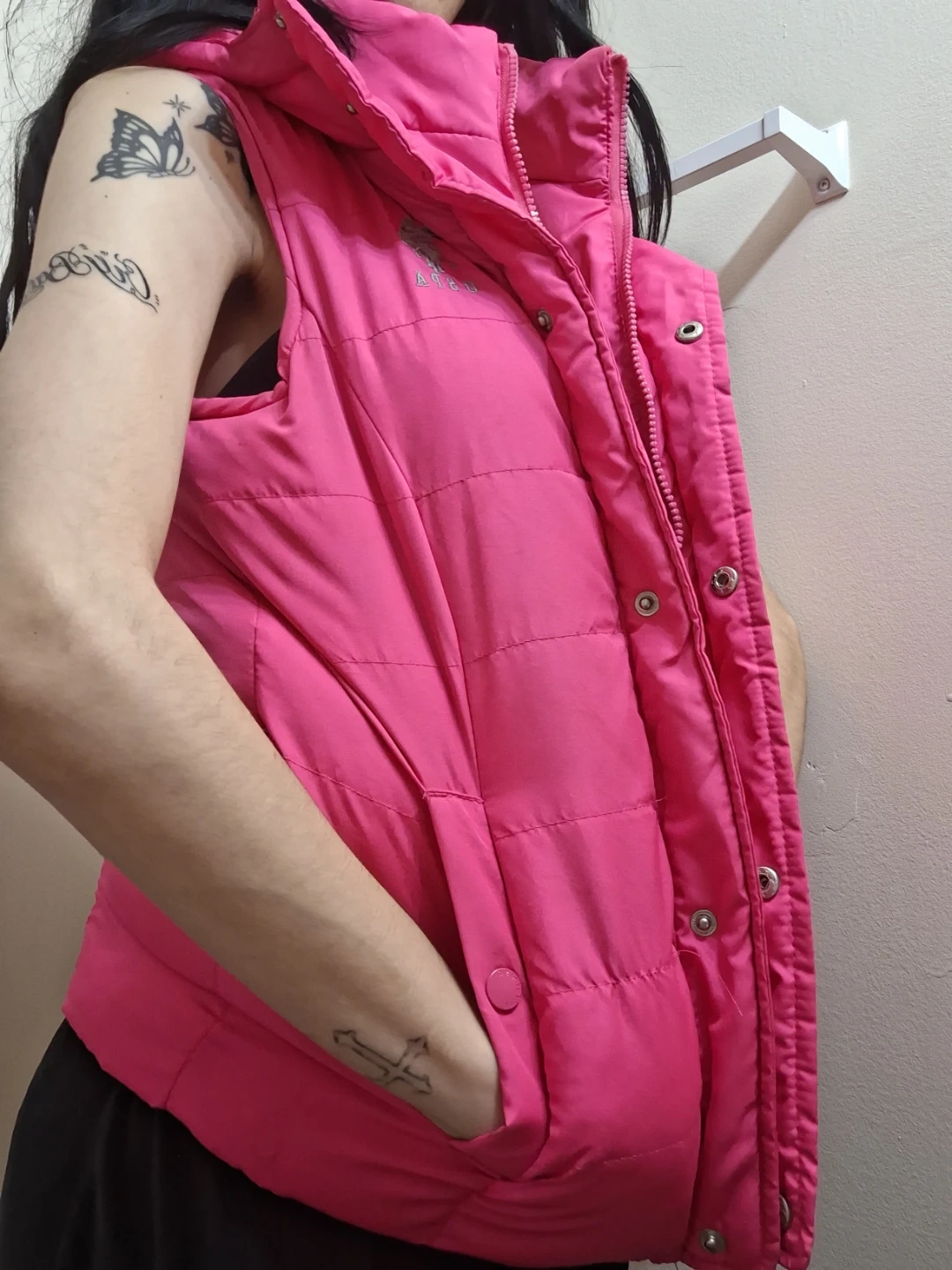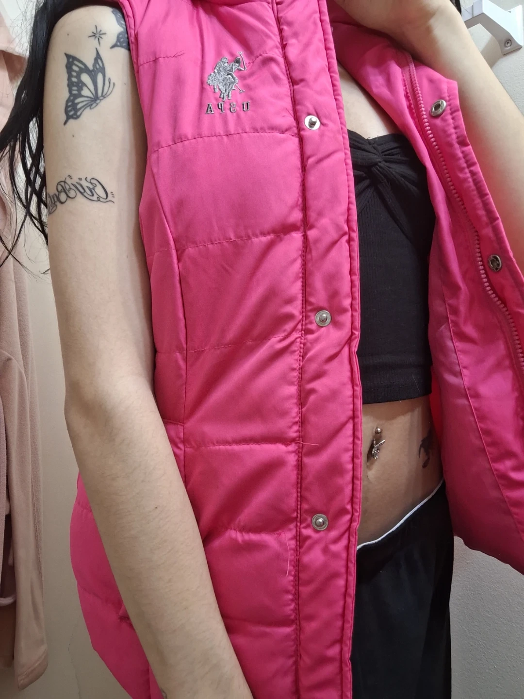Selling a U.S. Polo Assn. puffer vest in a vibrant pink! It's a size small and made of 100% polyester. Perfect for adding a pop of colour to your outfit!