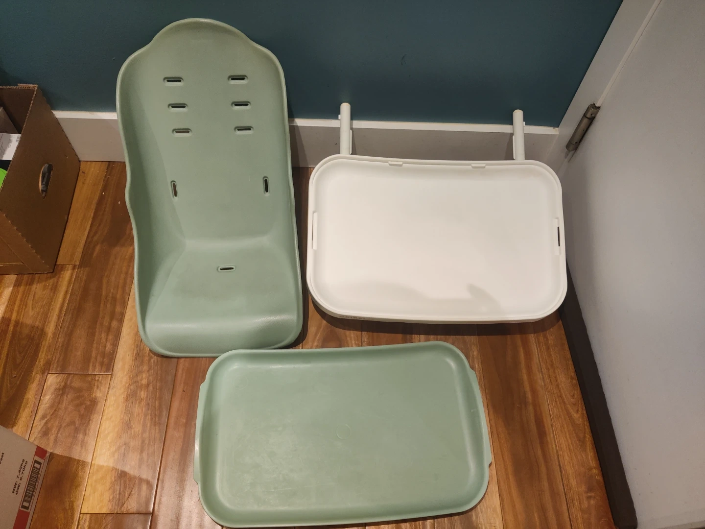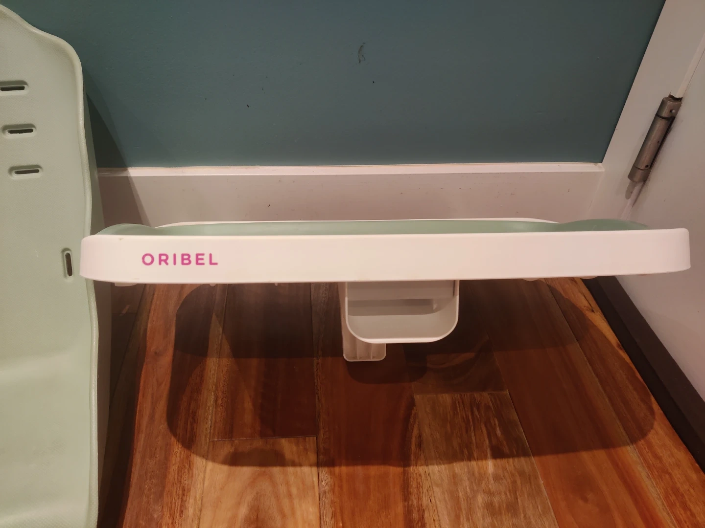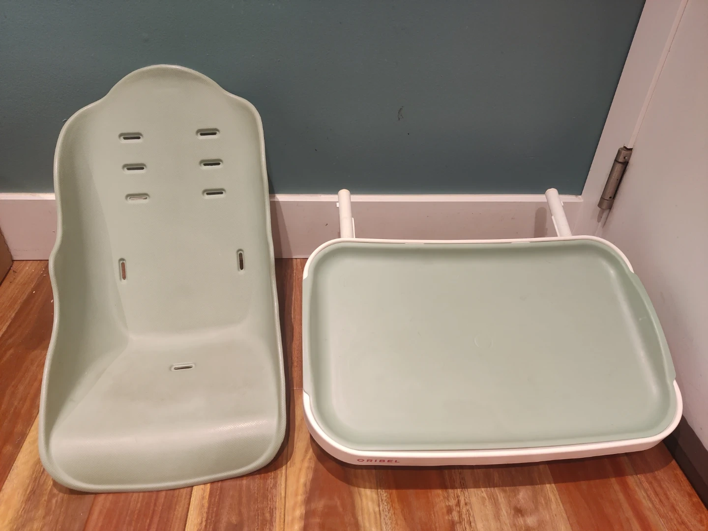 Green tray and seat pad for Oribel Cacoon highchair in good condition.