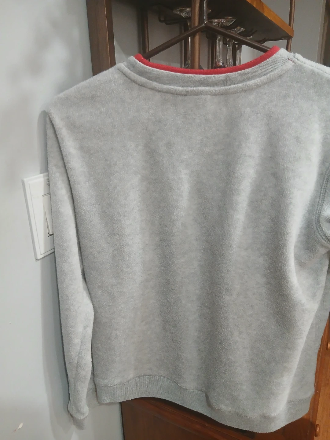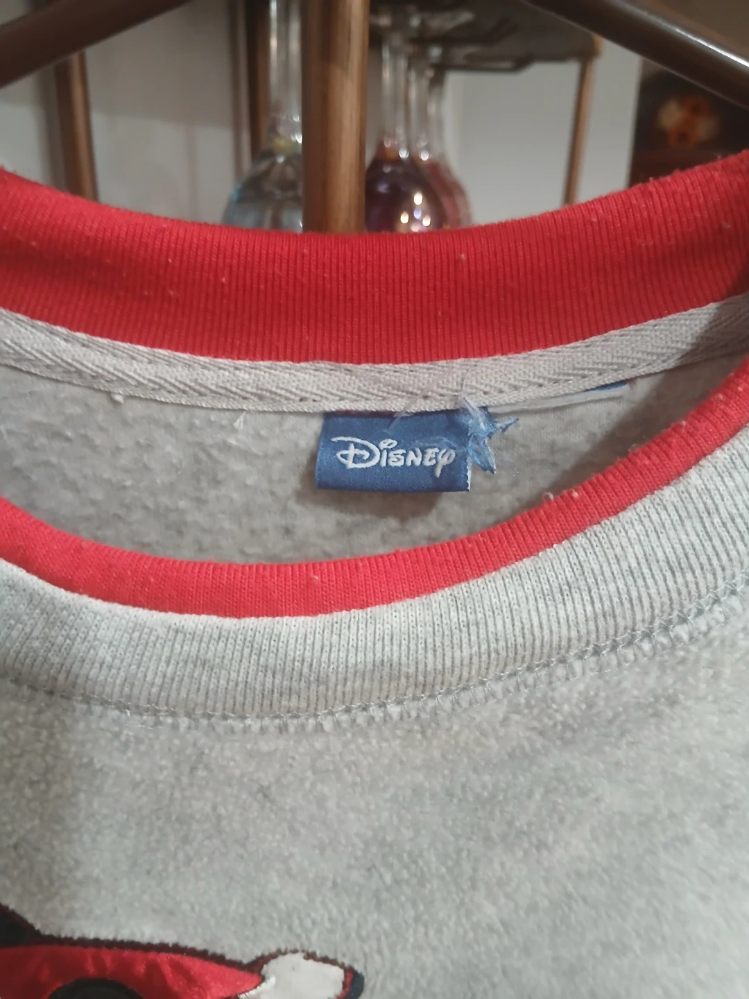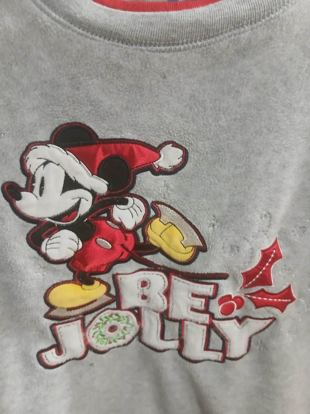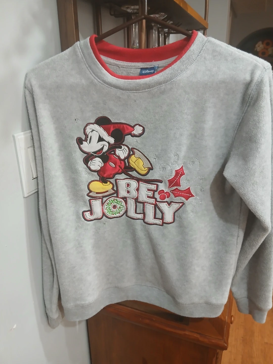 Cozy Disney sweatshirt featuring Mickey Mouse with a 'Be Jolly' design! It's a soft, grey colour with red accents around the neck. Perfect for the holidays or any time you want to feel festive!,ladies XS