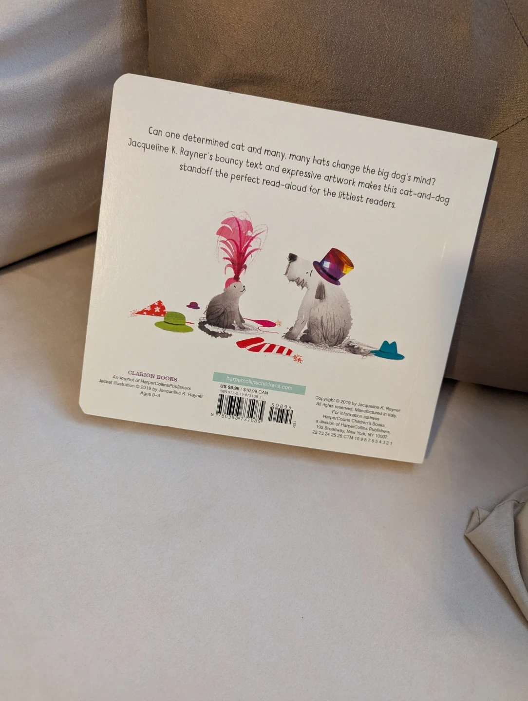 Selling a brand NEW board book titled 'Hats Are Not For Cats!' by Jacqueline K. Rayner. It's a cute story about cats and dogs and their opinions on hats! Great for little readers aged 0-3.