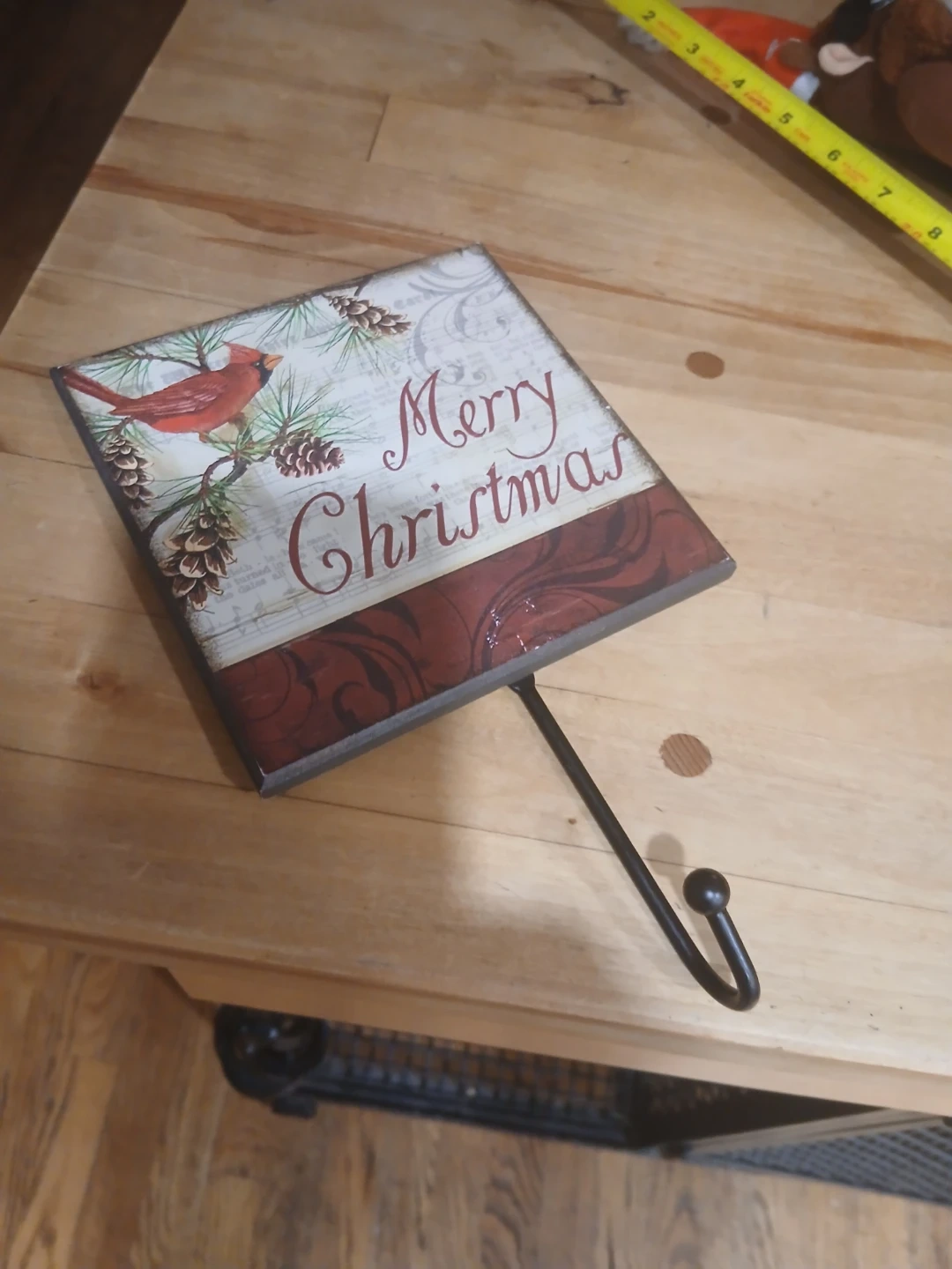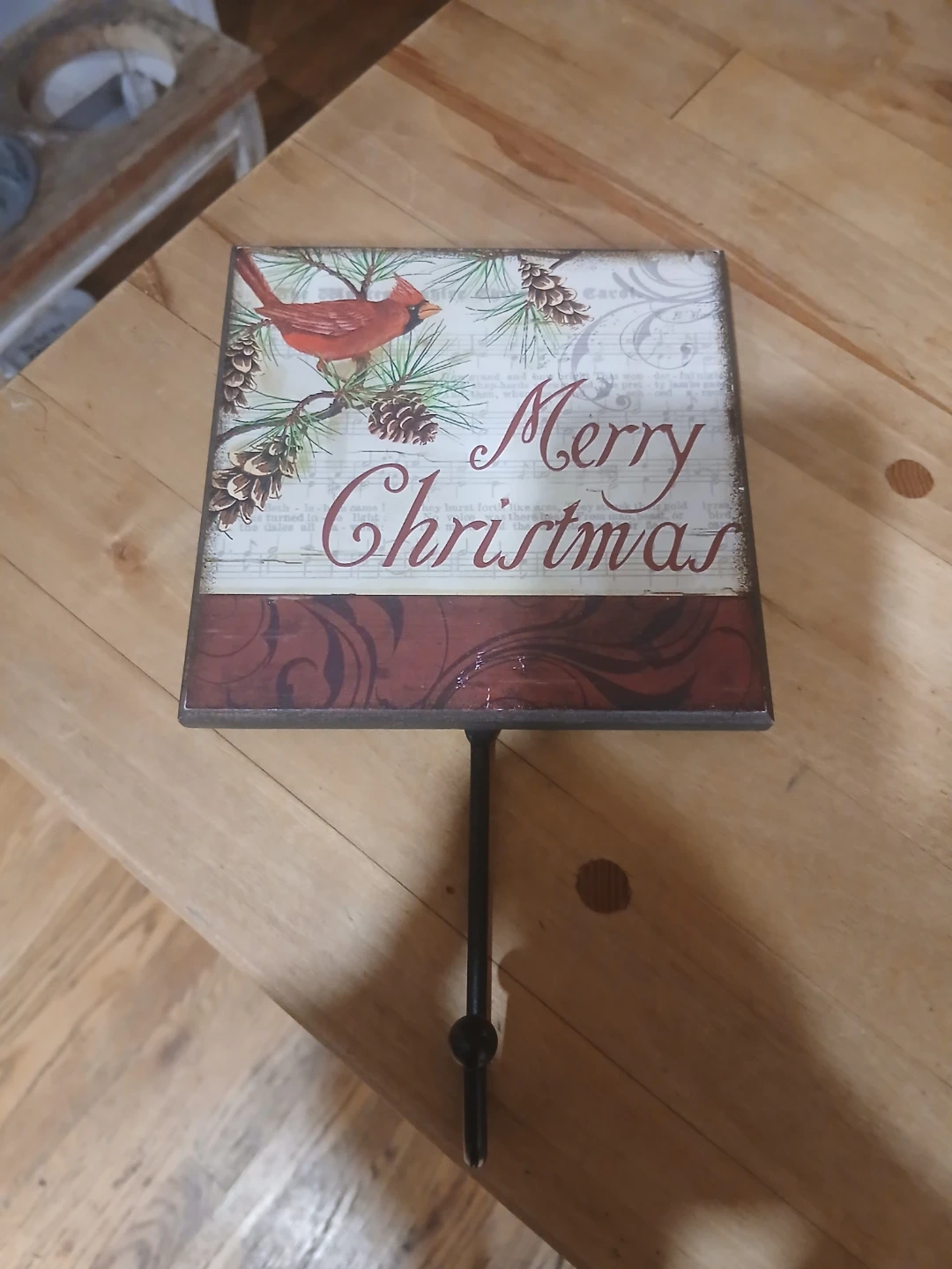Cute wall hook with a festive cardinal and pinecone design! Perfect for adding a touch of holiday cheer to any room. It's in great condition and ready to hang your coats or decorations