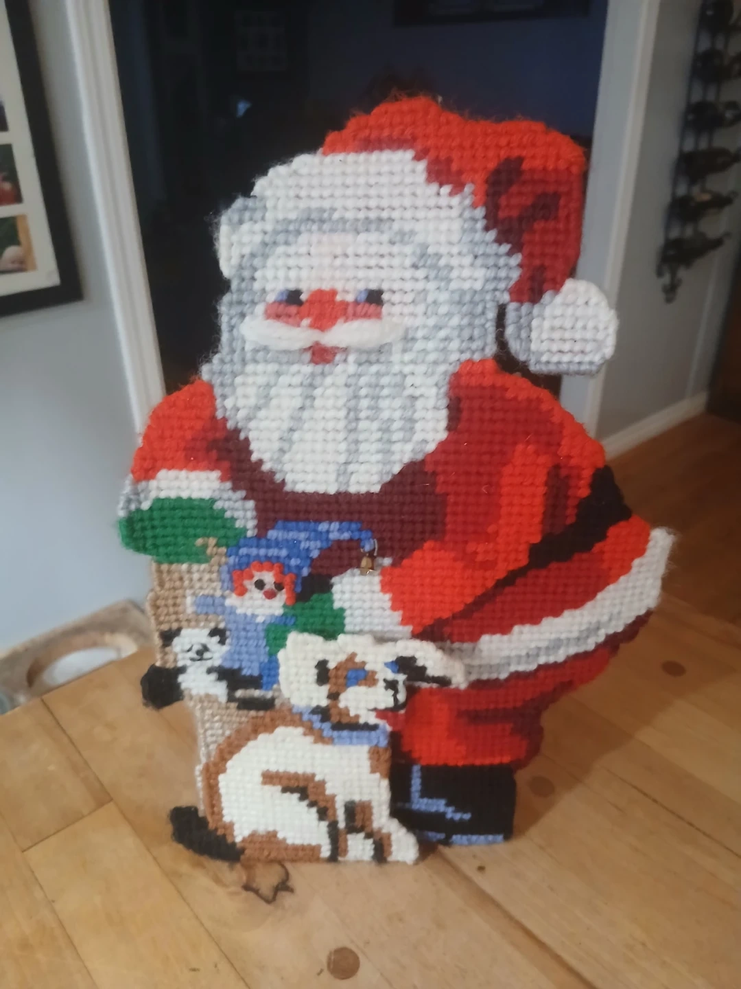 Selling a charming handmade Santa Christmas door stop.This unique piece features Santa with a sack full of toys and cute animal friends. It's perfect for adding a festive touch to any room during the holiday season