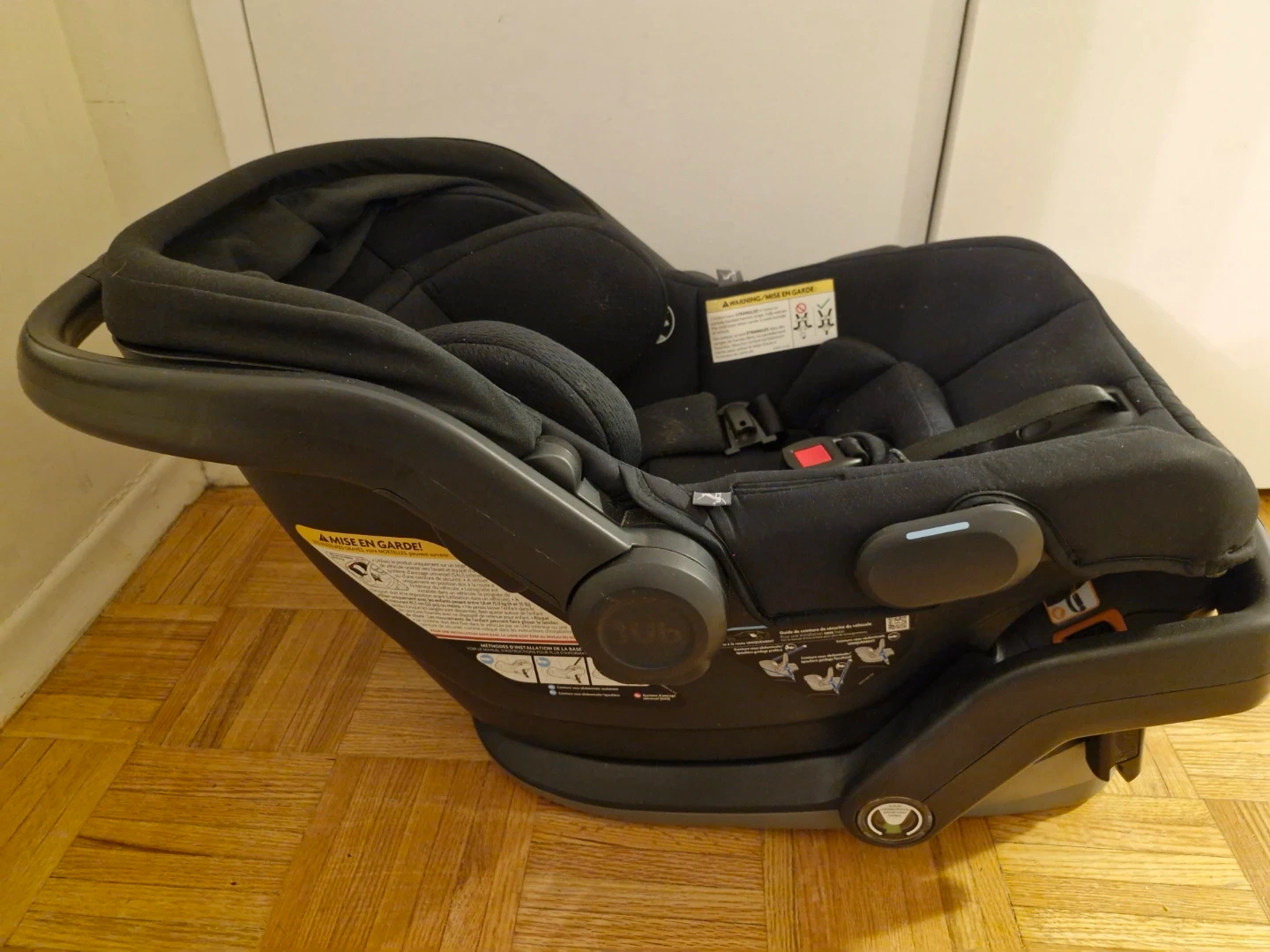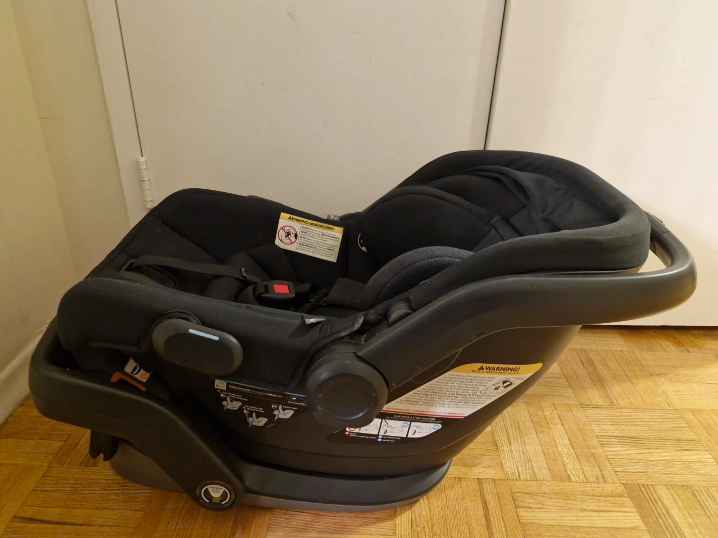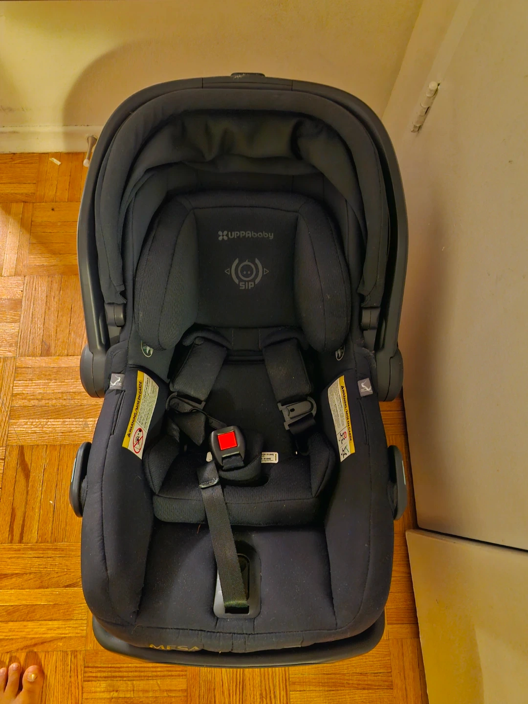 Selling a gently used UPPAbaby Mesa V2 infant car seat in black.