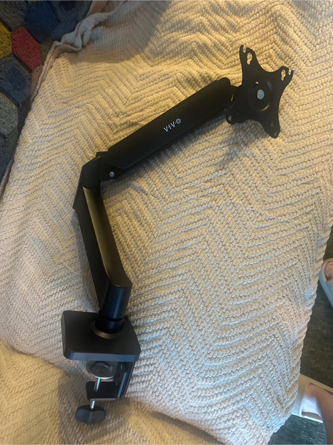 Selling a VIVO monitor arm desk mount in black. It's in great condition and ready to help you optimize your workspace! This mount is perfect for creating an ergonomic setup and freeing up desk space. Only comes with C clamp.