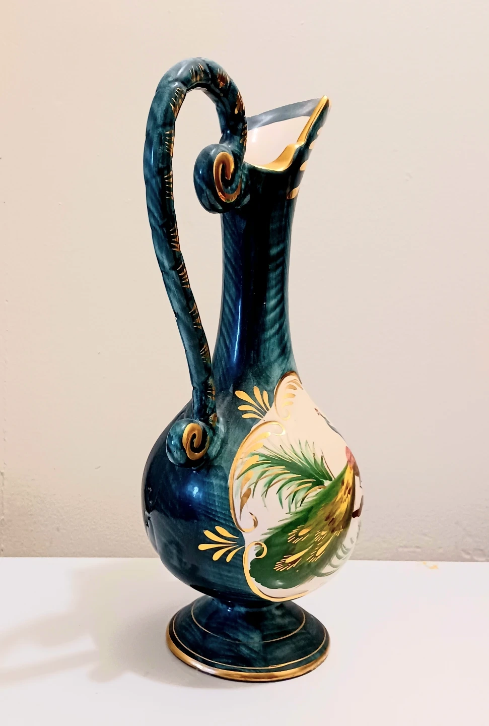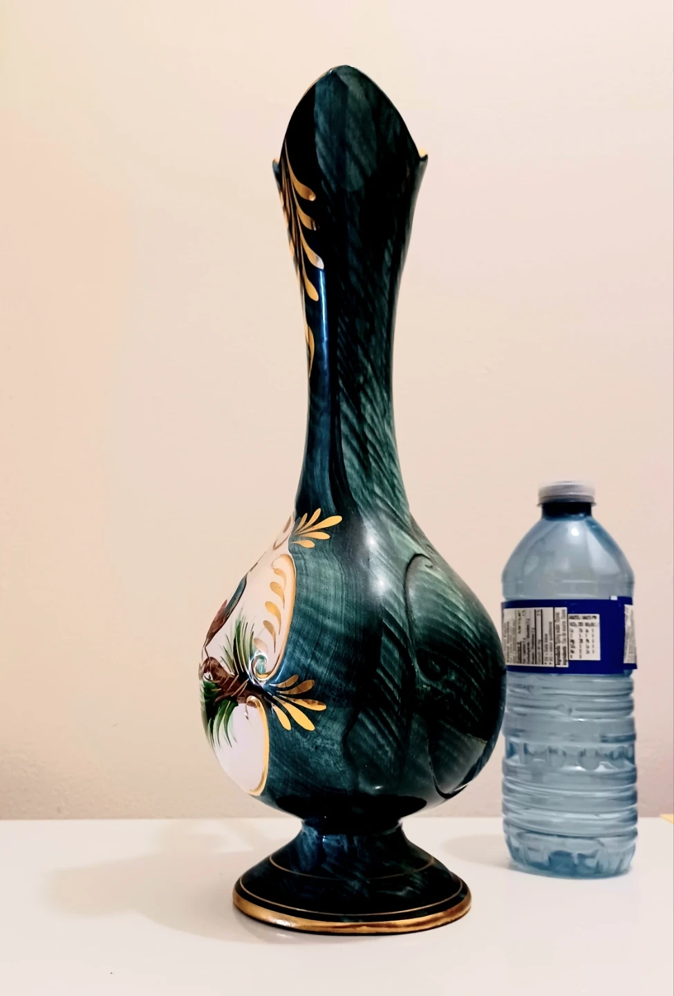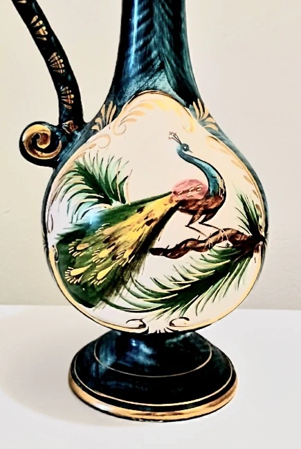 Vintage, Very Rare, Collectible Household Hand Painted H.Bequet Quaregnon Rare, Stunning Peacock Vase # 272 Golden Trimmed