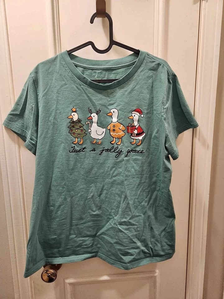 Christmas t shirt holiday goose green
