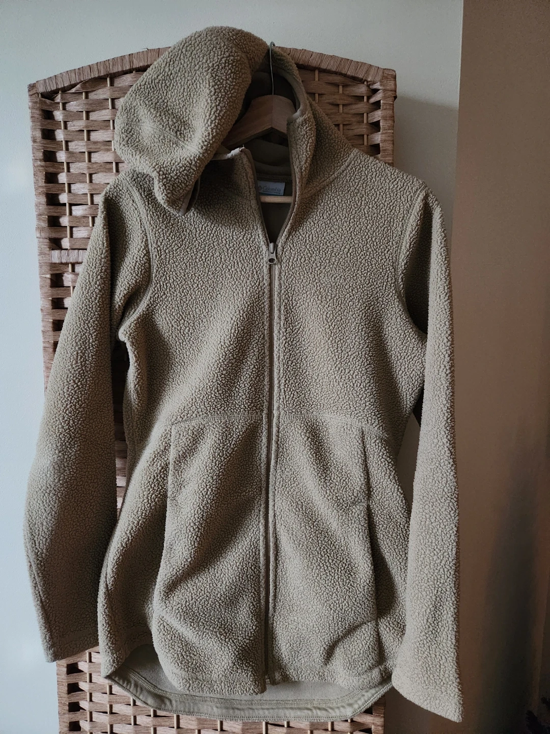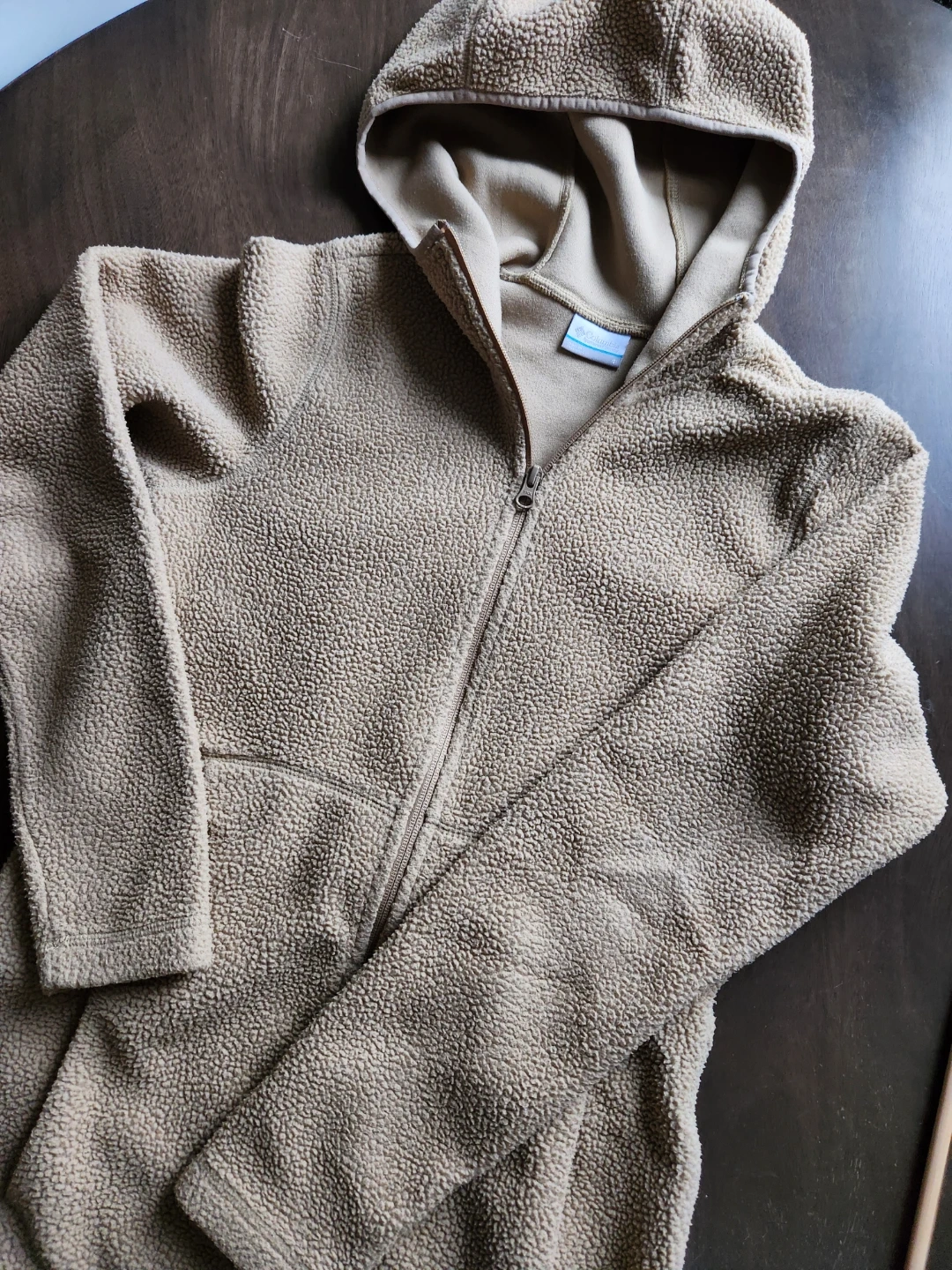 Cozy up in this Columbia fleece zip-up hoodie! It's a size small and in great condition. Perfect for layering or wearing on its own during cooler days. The neutral colour makes it easy to match with anything!