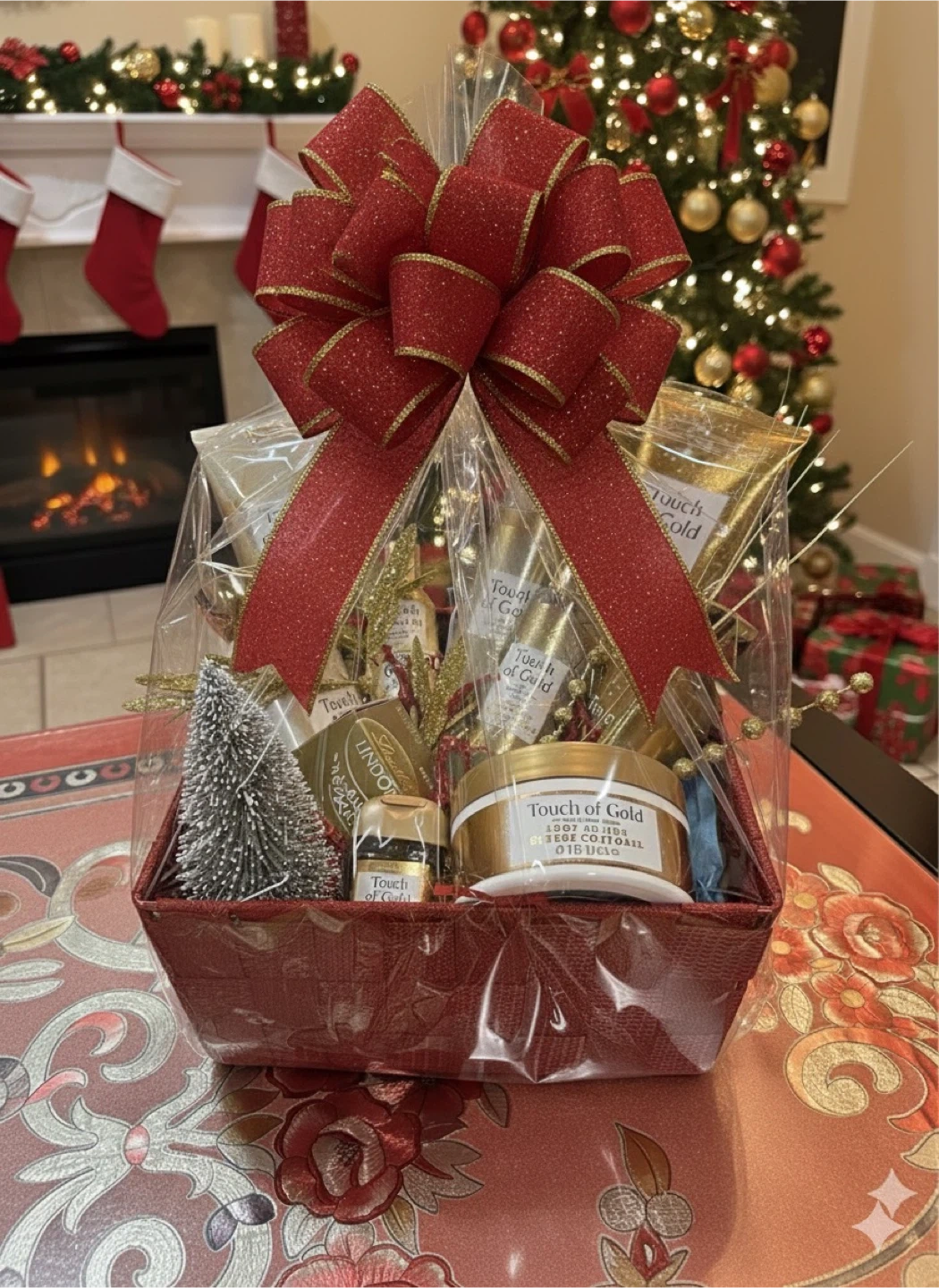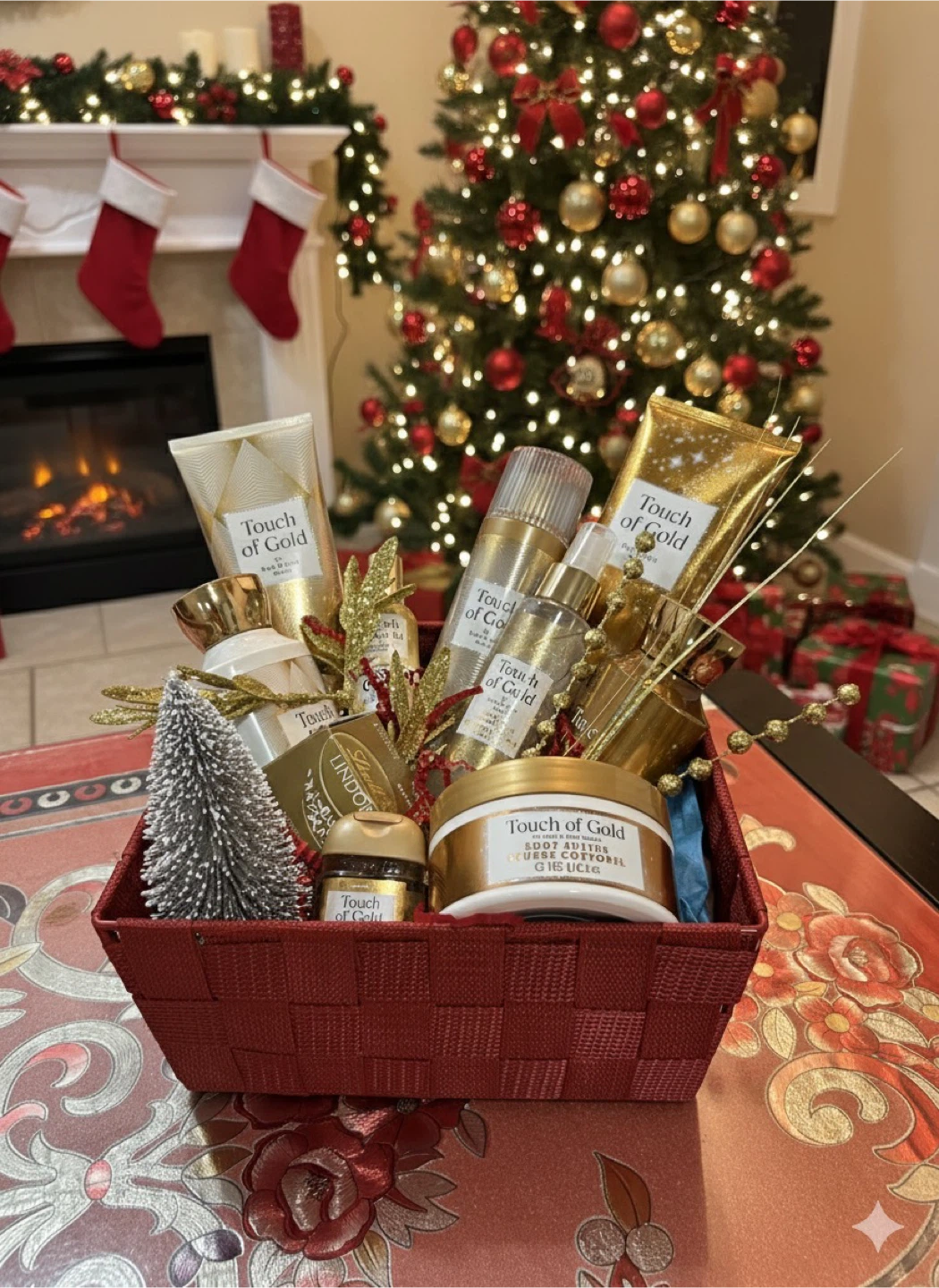 Selling a lovely Touch of Gold gift basket, perfect for the holidays! It includes an assortment of bath and body products. It's all packaged in a festive red basket with a beautiful bow.can make according to your budget also.dm me for more information