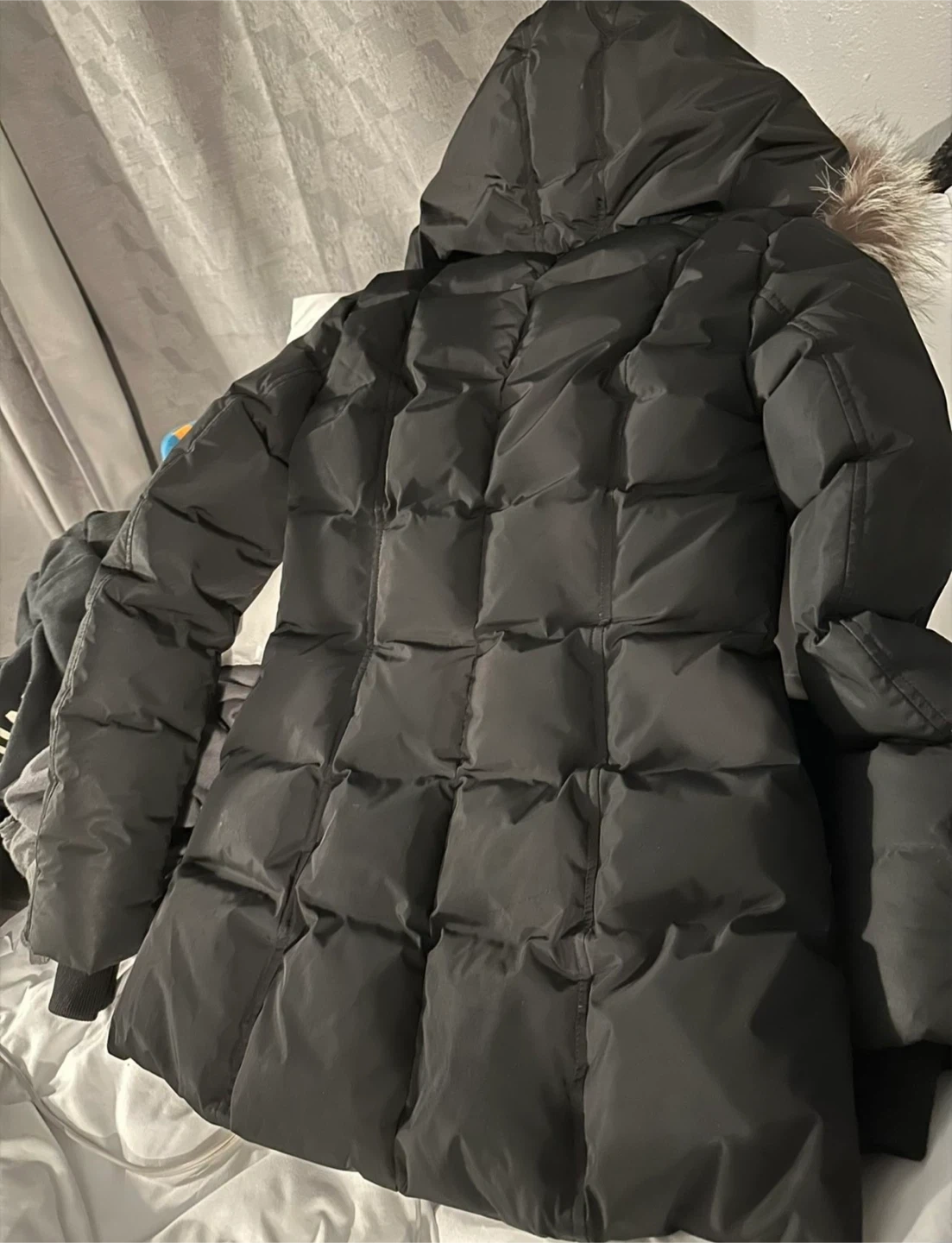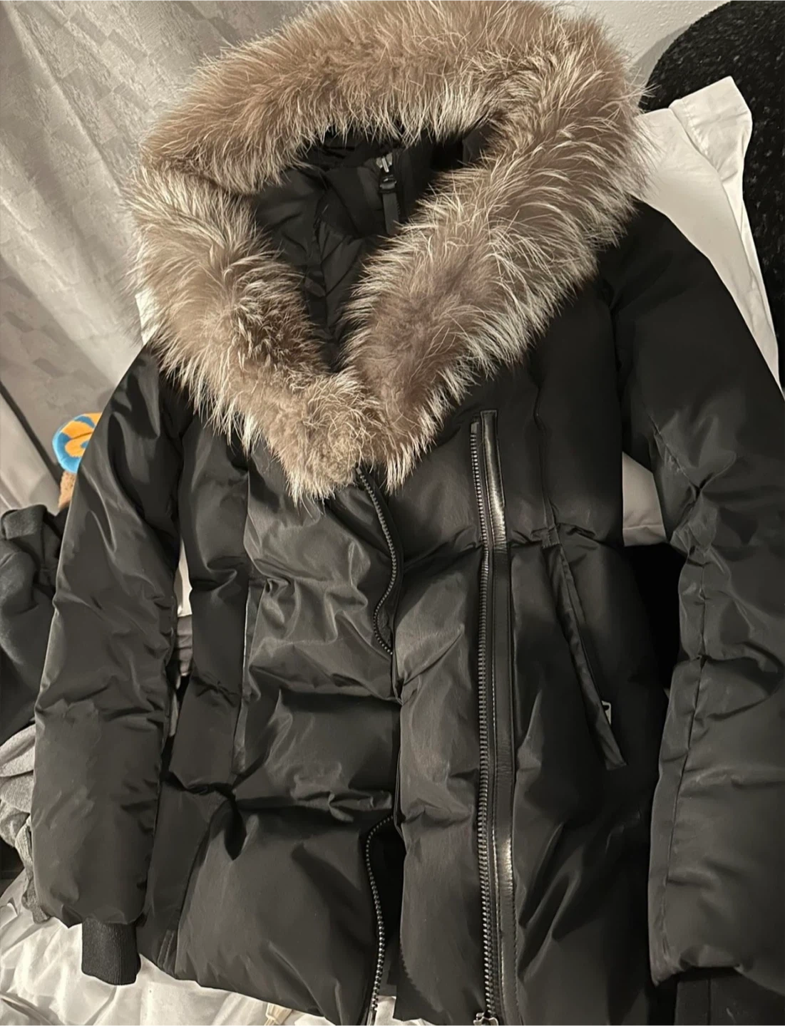 Selling a Mackage Adali down winter coat in black! It's in great condition and perfect for the cold weather. It features a fur-trimmed hood and a stylish design to keep you warm and fashionable size M