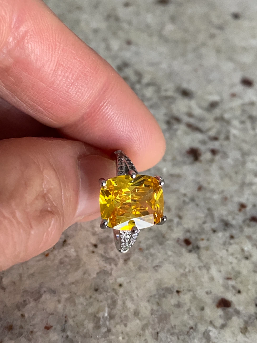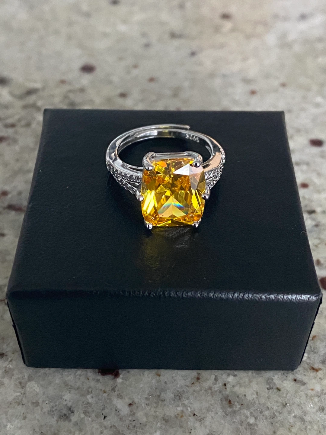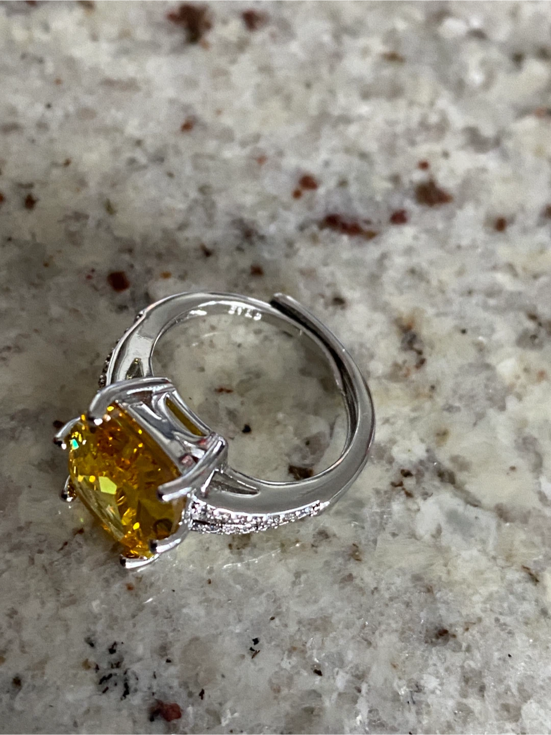 Here's a beautiful silver ring with a lab created citrine. The stone is a very high quality and changing a colour depending on light. See the pictures for details pls. The ring is adjustable. Box is not included