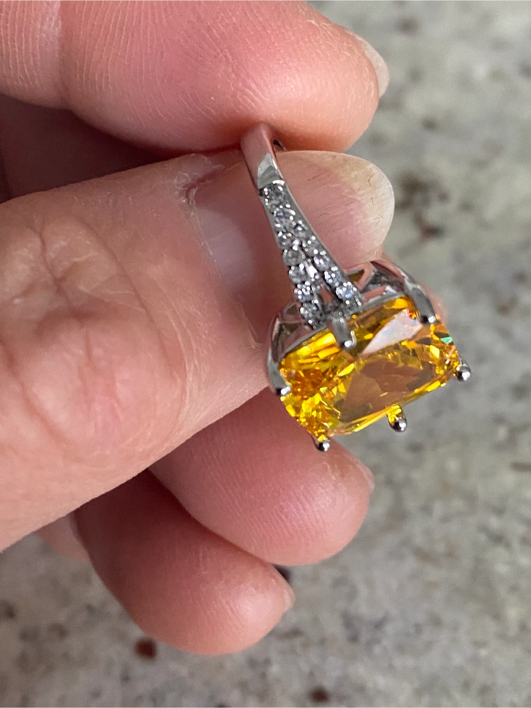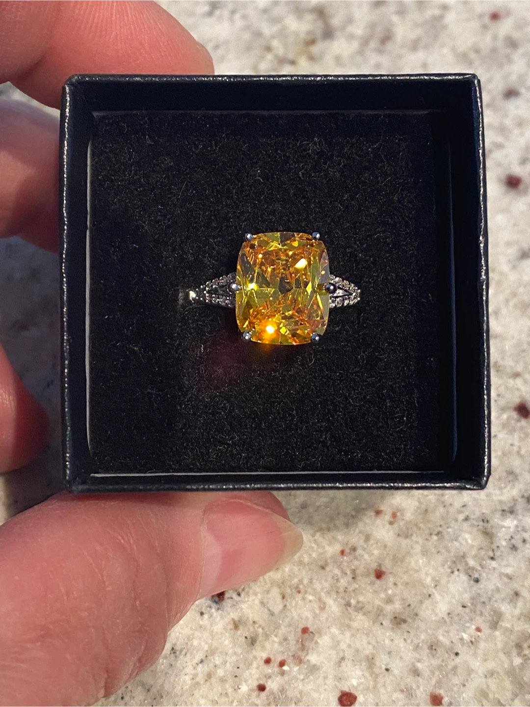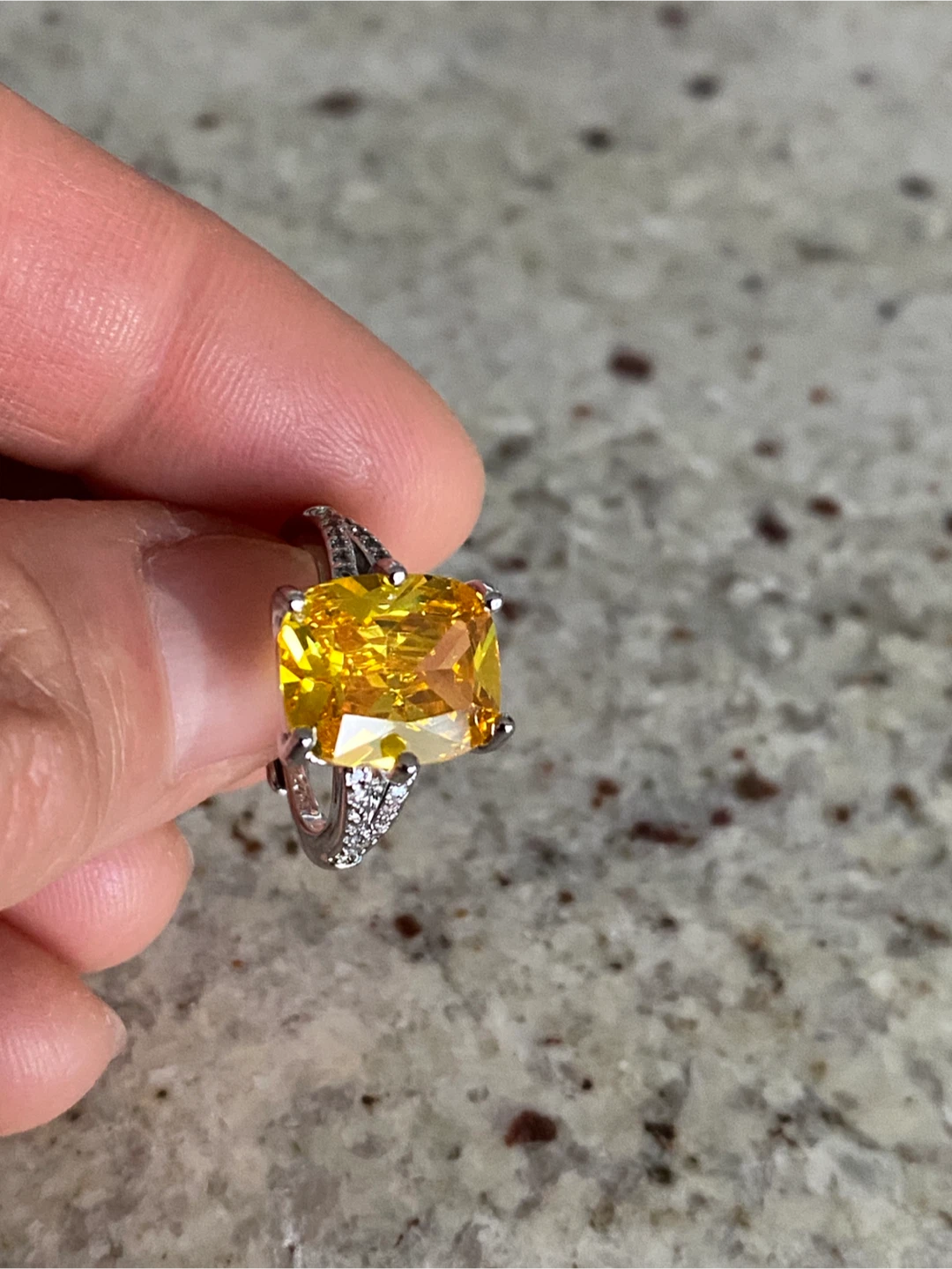 Here's a beautiful silver ring with a lab created citrine. The stone is a very high quality and changing a colour depending on light. See the pictures for details pls. The ring is adjustable. Box is not included