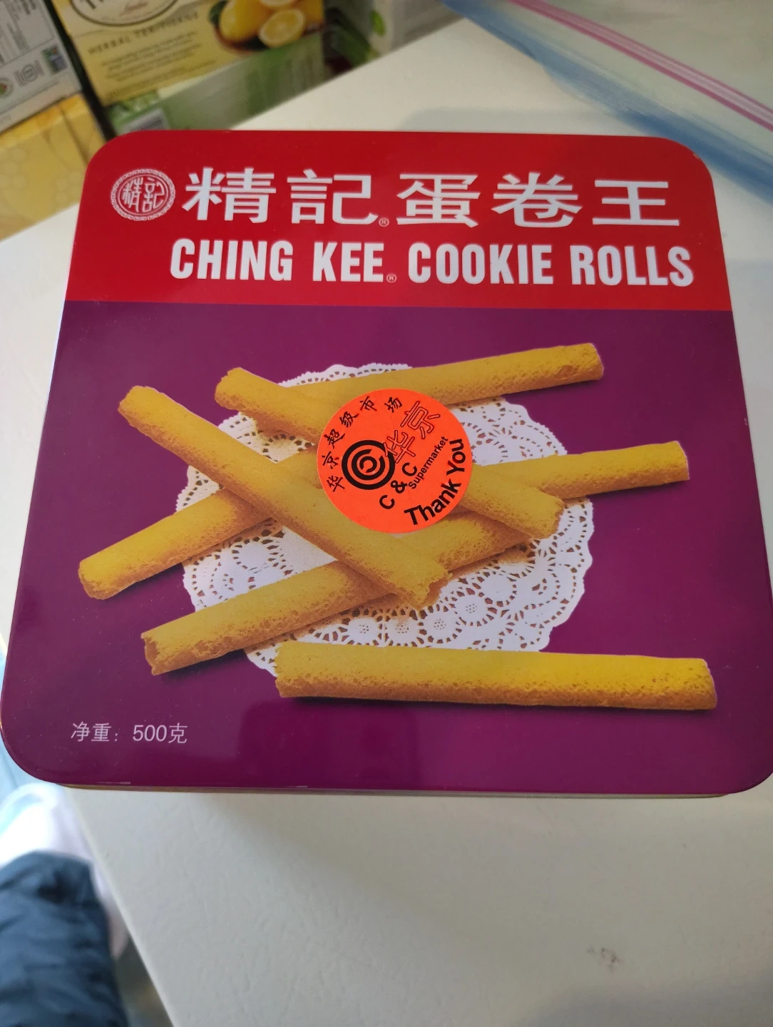 Selling a tin of Ching Kee Cookie Rolls! The net weight is 500g. Perfect for a snack or to share with friends and family. Ate a bit so I'm doing it free.