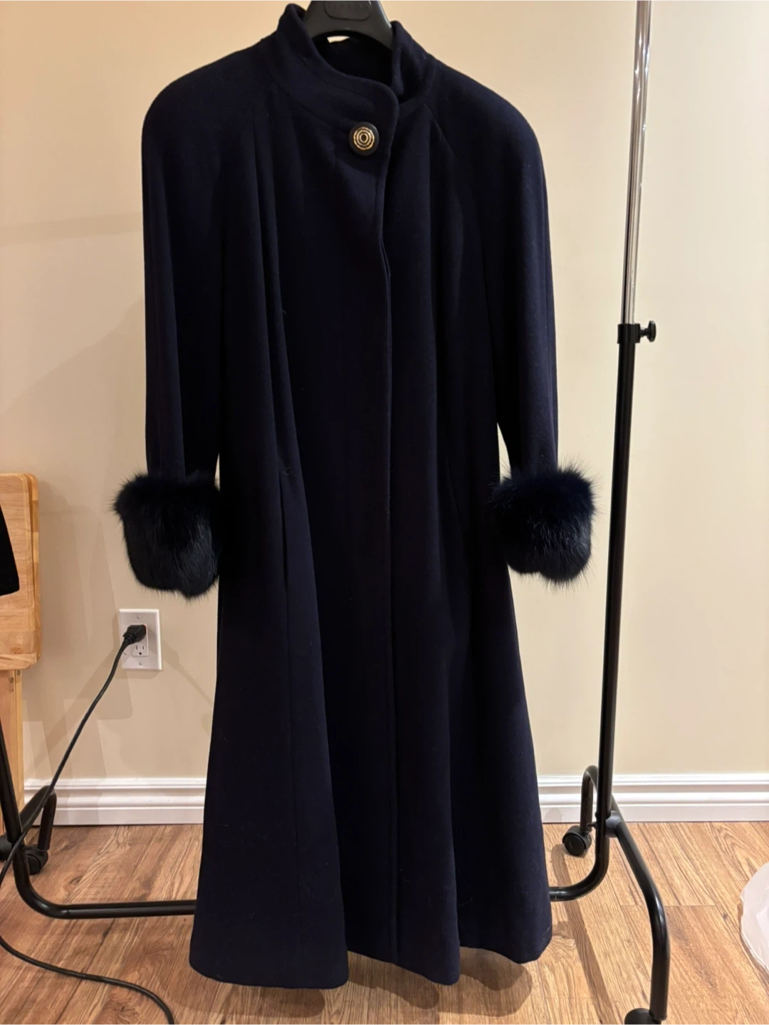 Selling a gorgeous Anna Collection coat. It's a luxurious blend of wool and cashmere, perfect for keeping warm and stylish! The coat is size 10 and is made of 65% virgin wool, 15% cashmere, and 20% nylon. It also features fur cuffs, adding a touch of elegance