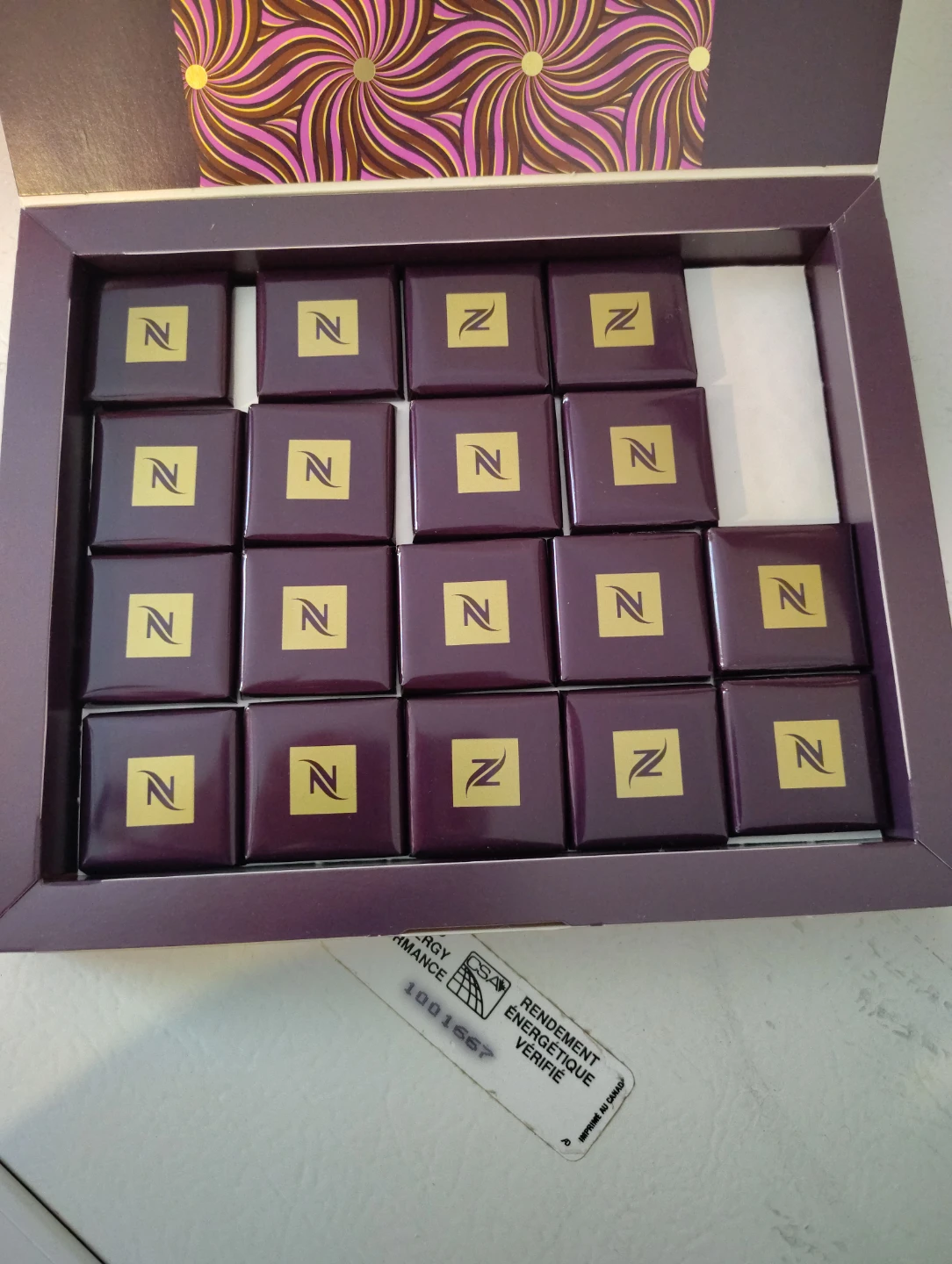 Selling a box of Nespresso Dark Chocolate with Caramelised Cocoa Nibs! Perfect for a little treat with your coffee. Not much so I'm doing it free. 2026 05 31 expire date