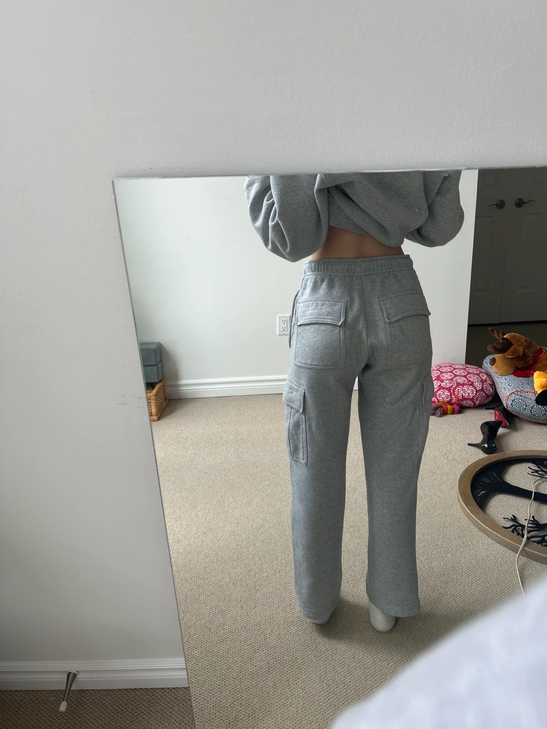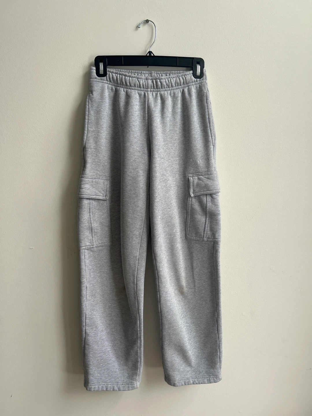 Selling a pair of Aritzia heather grey cargo sweatpants. They're super comfy and in great condition! Perfect for lounging around or running errands