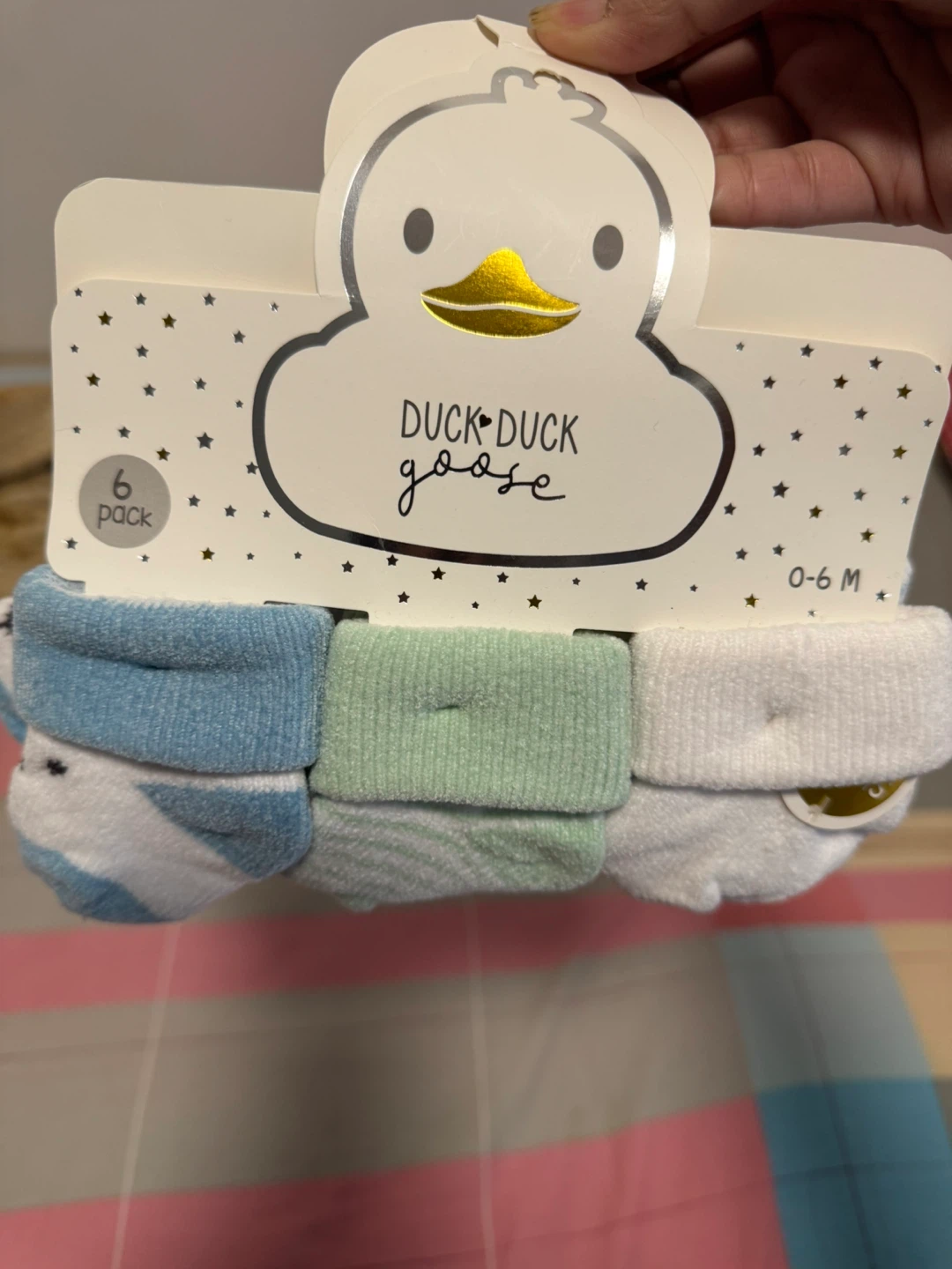 Here's a brand new pack of baby socks from Duck Duck Goose! These are sized for 0-6 months and come in a pack of 6. They're super cute and ready for your little one!