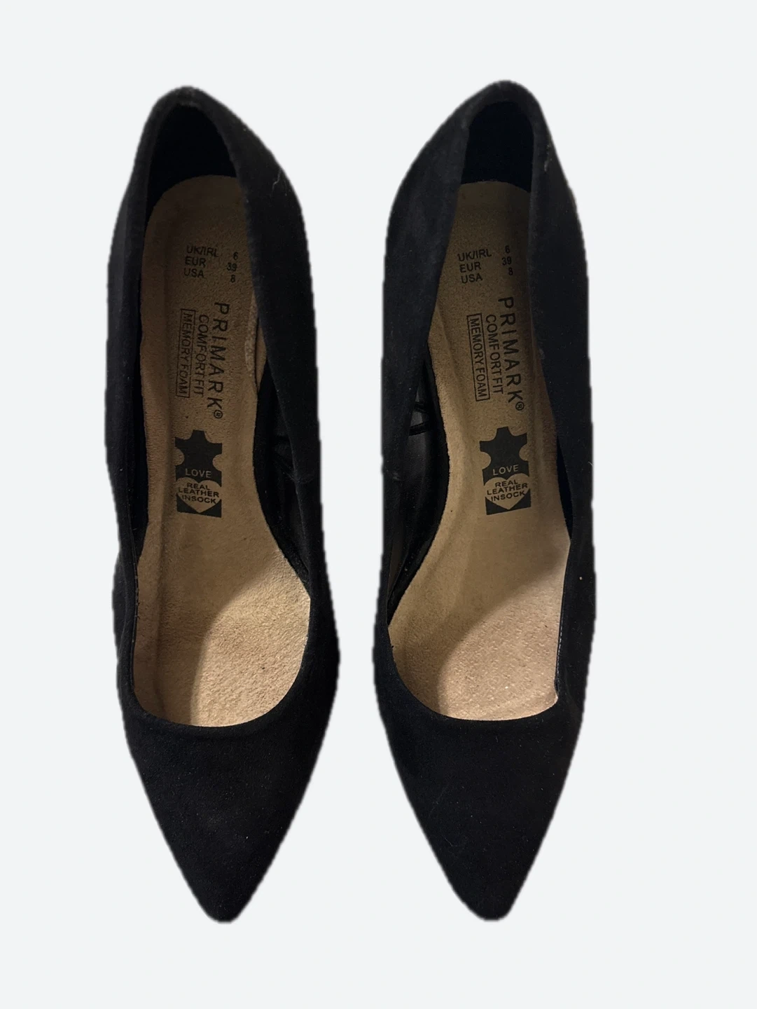 Selling a pair of black heels from Primark in size 8. These heels feature a pointed toe and would be a great addition to your wardrobe!