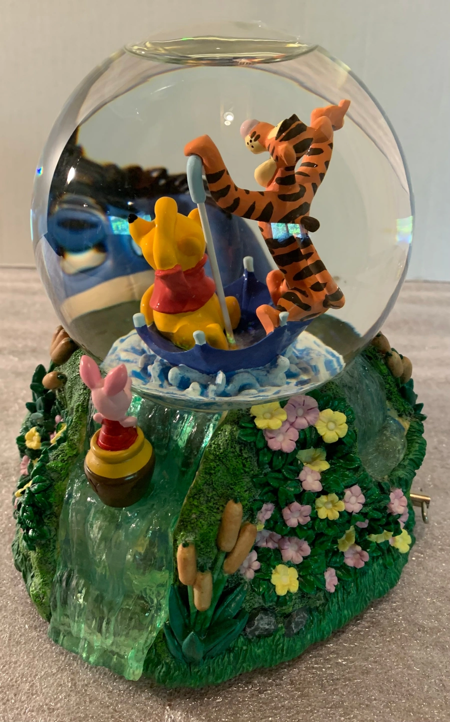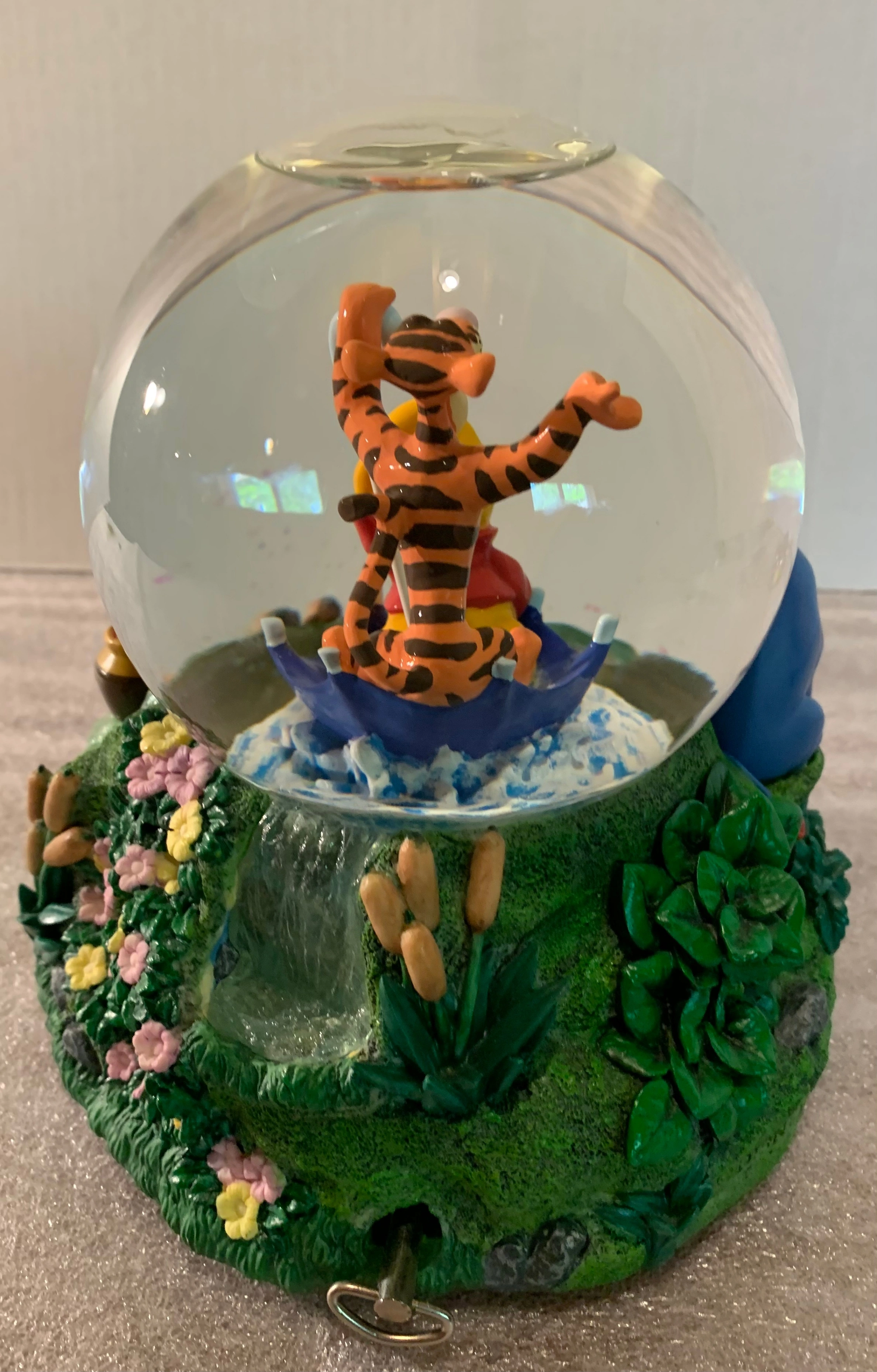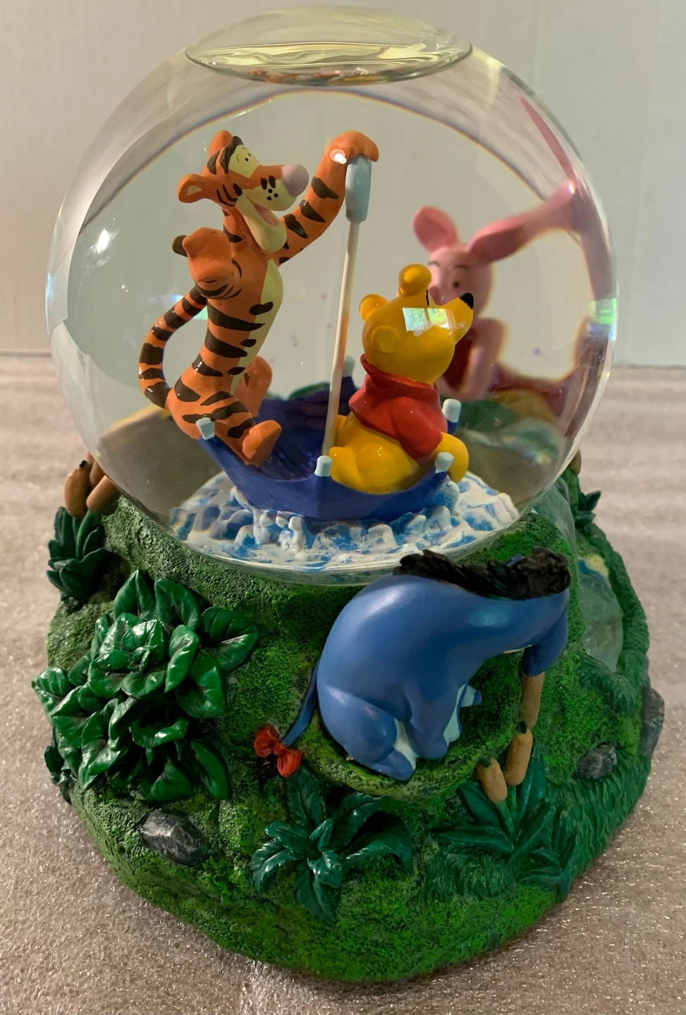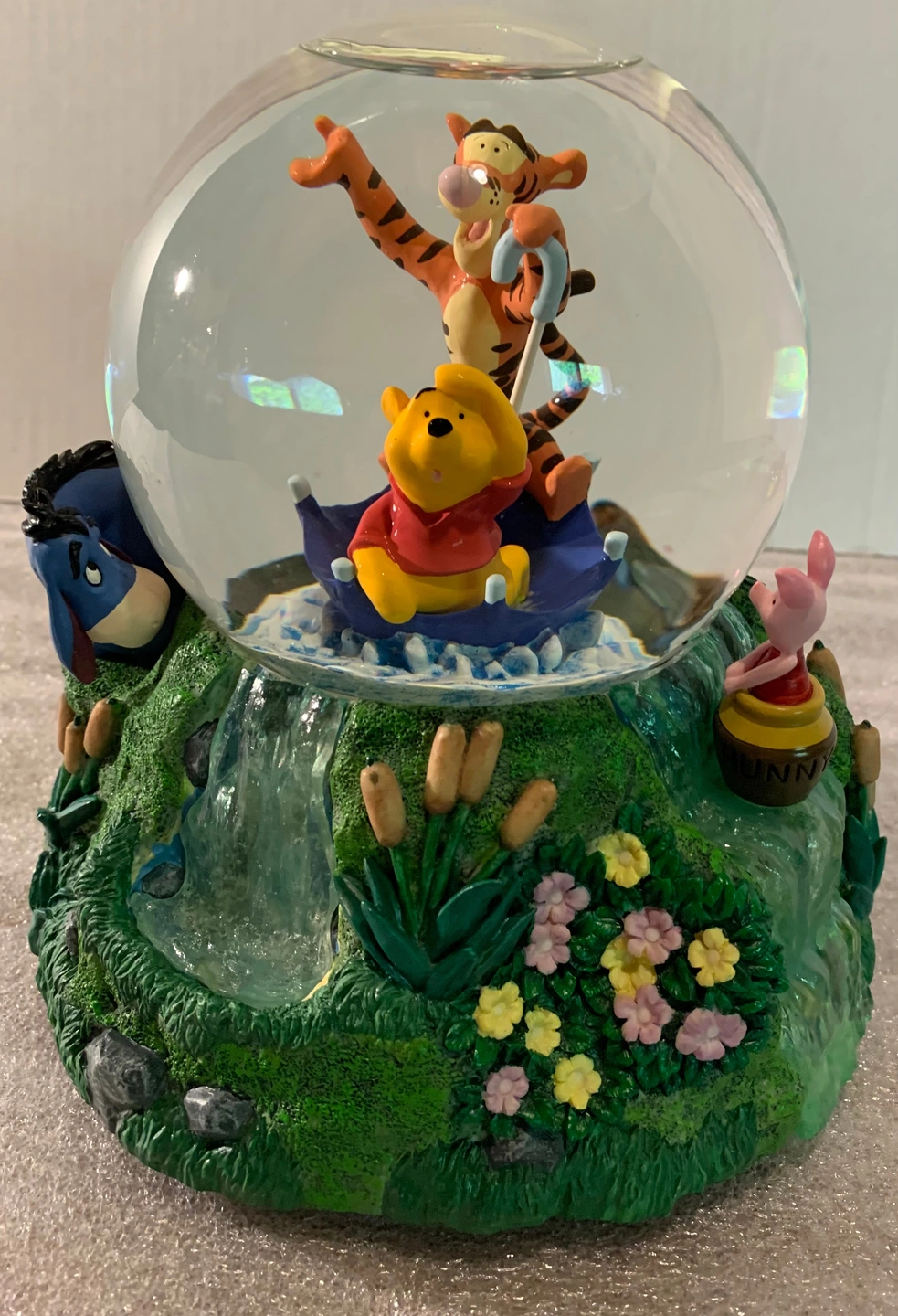Disney Store Snow globe figurine Tigger Eeyore Pooh Rain Come Down Musical Christopher Robin Roo Owl Rabbit snowdome Moving turn (About 8" Tall)