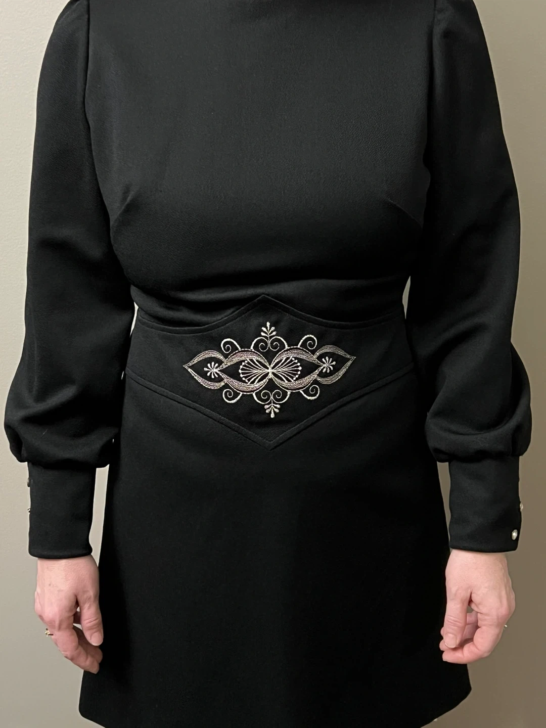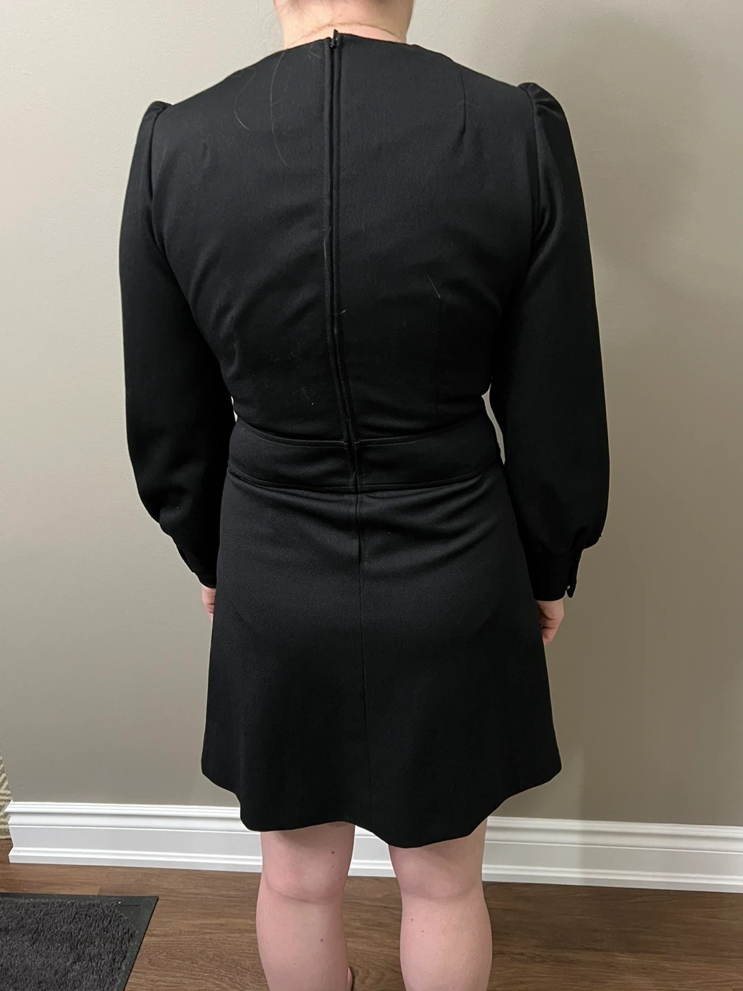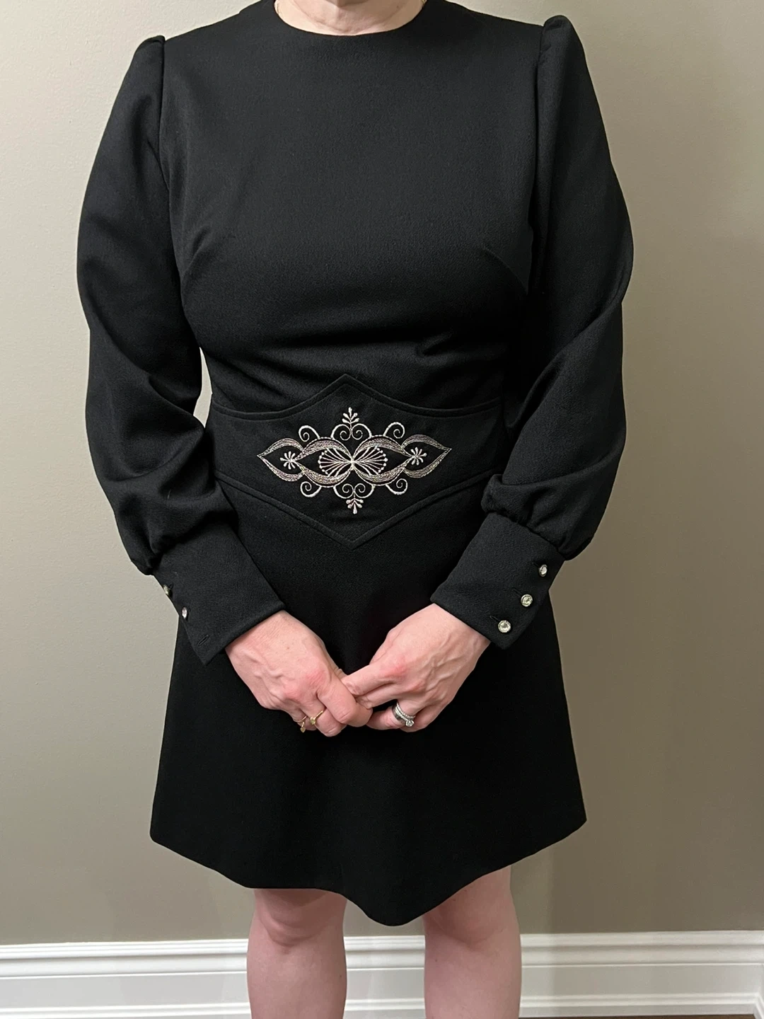 Selling a vintage Crimplene black dress in size 38. It's made of 100% polyester and has a unique design. Perfect for anyone who loves vintage fashion!