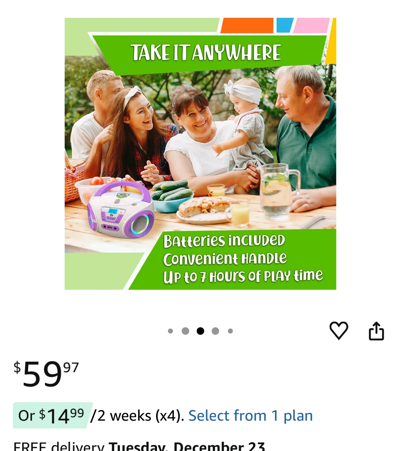 It's highly durable and has a long-lasting battery for up to 7 hours of playtime. The box is included!