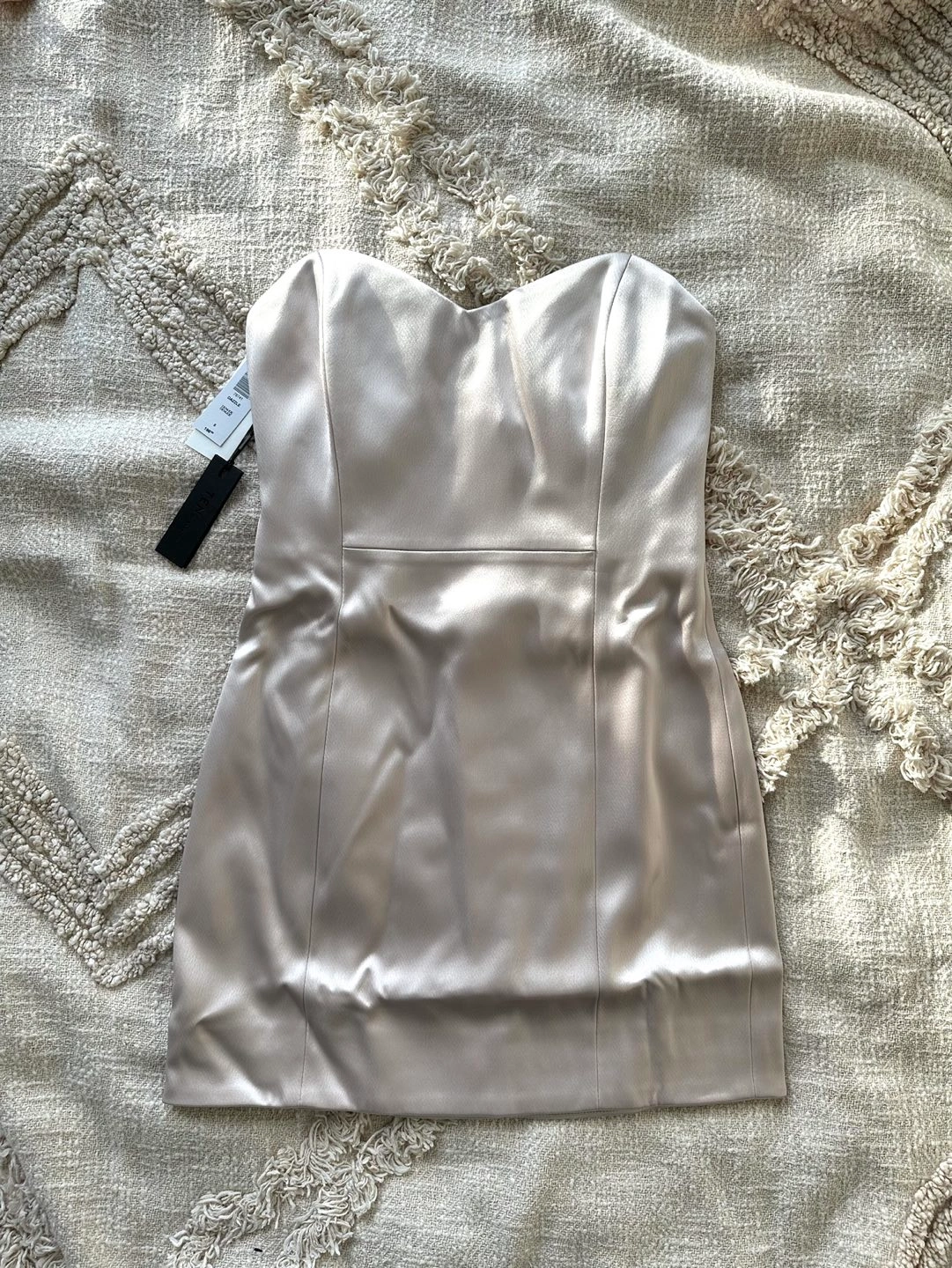 706Strapless satin dress in a light nude colour. It’s a very cute dress and the material feels nice, but it runs small and is better suited for someone size 4! Never worn and still has tags on. ❗️Needs to be gone by early July! Whatever isn’t picked up by then will be donated. Feel free to browse my other listings if you’re interested! If you purchase multiple items I can provide a discount. :) Condition: New Brand: Aritzia Size: 6