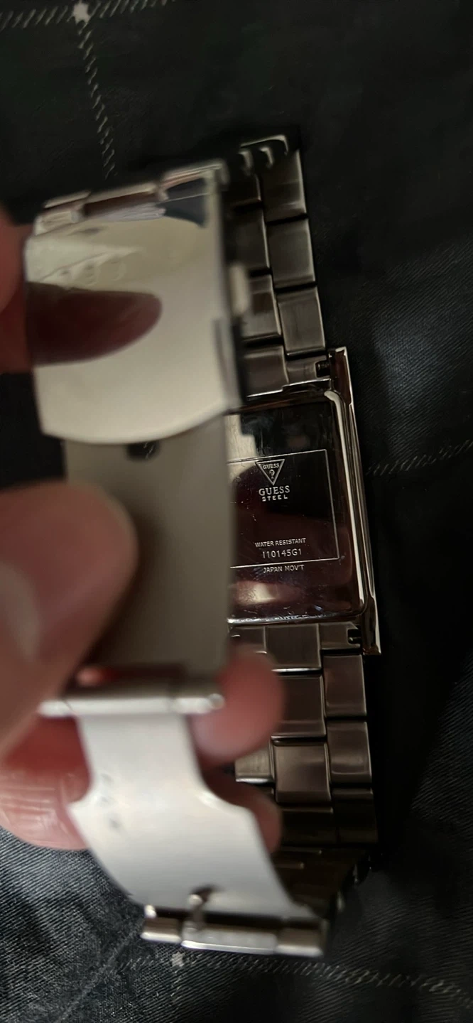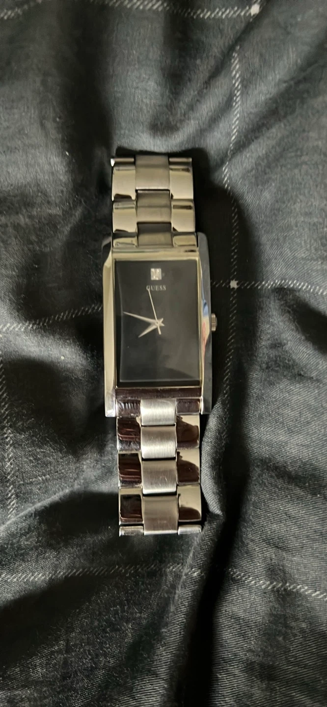 Selling a Guess Steel watch, model 11067G. It's a stylish timepiece with a stainless steel band and a sleek black face. Perfect for everyday wear or dressing up!