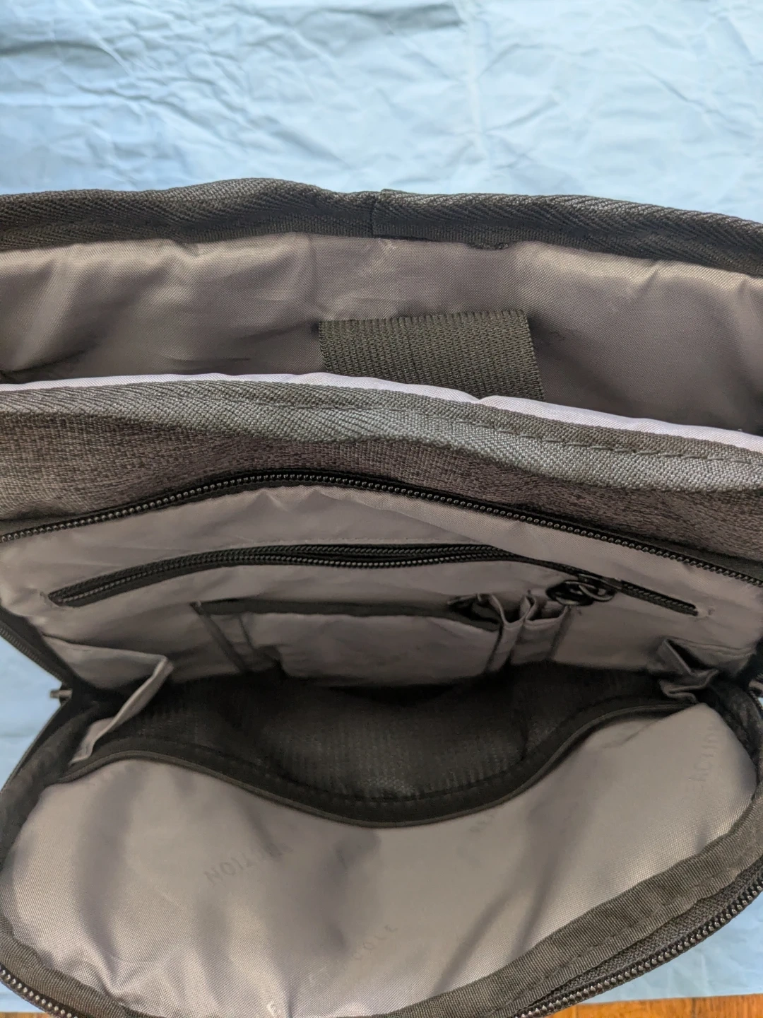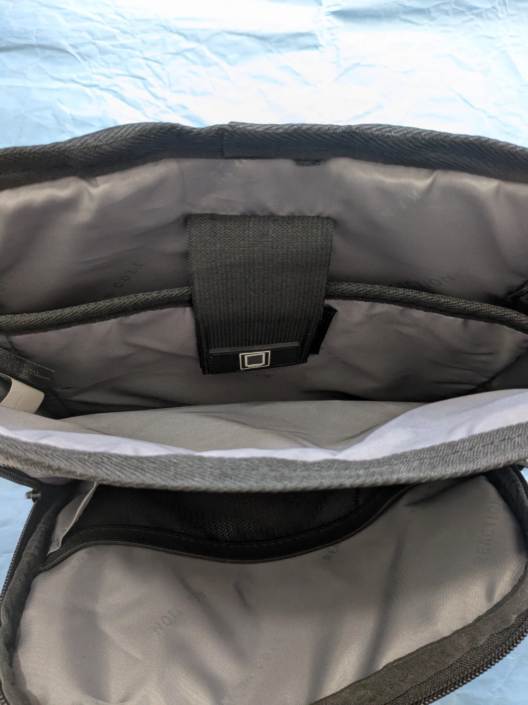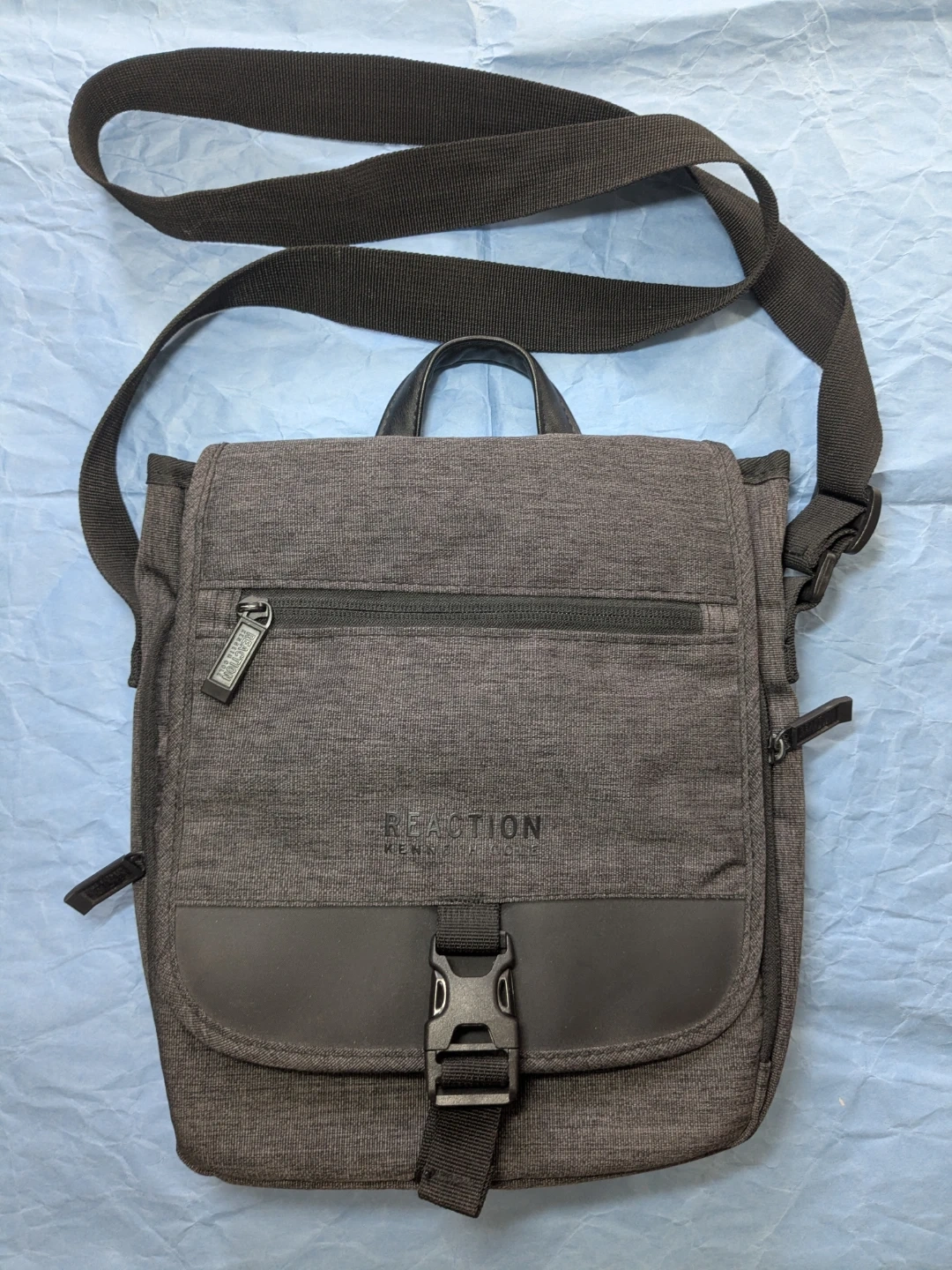 Here is a Reaction Kenneth Cole messenger bag in gray. It's in great shape and ready for a new owner! It has a shoulder strap and several compartments for organizing your belongings.