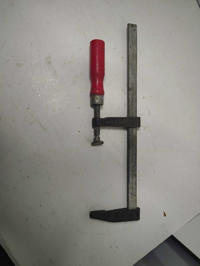 This bar clamp is a sturdy tool for woodworking or metalworking projects, providing a firm grip. In used condition, it's ready to get to work in your shop. * Robust construction for durability. * Easy to adjust and tighten. Add this bar clamp to your toolkit for reliable performance. If the ad's up, it's still available – ready to clamp down on your next project!