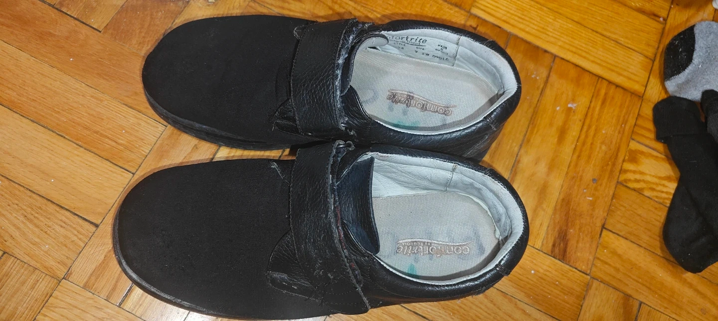 Selling a pair of Comfortrite shoes in black, size 7. They have a velcro strap for easy fastening. Good shoes for everyday wear!