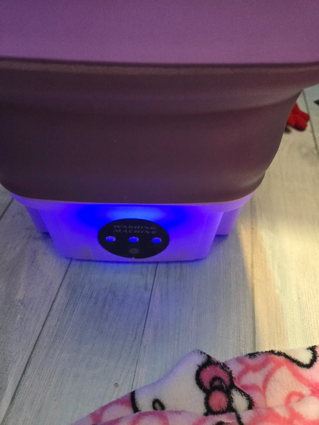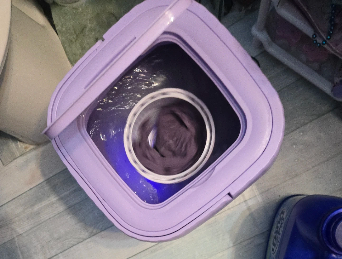 This is a portable, foldable mini washing machine, perfect for small spaces, travel, RVs, and camping. It has a collapsible design and can wash small items like underwear, socks, or baby clothes. The capacity can be up to 8 or 9 liters