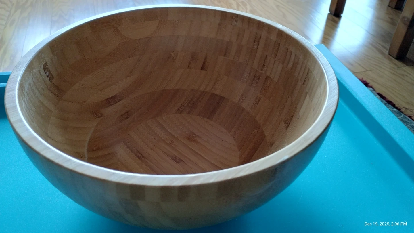 Wooden Salad Bowl from IKEA. 11" diameter and 5" deep. Can be used as a Salad Bowl or fruit bowl and for mixing cooking ingredients.