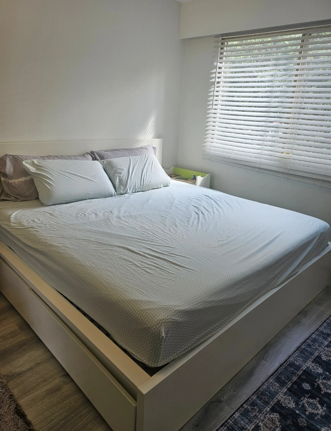 Selling a white IKEA king-size bed frame with storage plus a king-size Sleep Country mattress (TOGETHER)