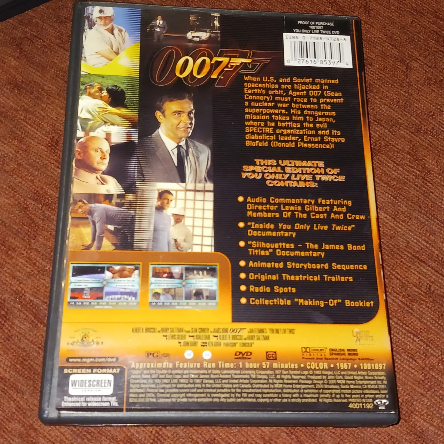 Selling a DVD copy of the James Bond film 'You Only Live Twice'! This is a special edition and includes audio commentary featuring Lewis Gilbert and members of the cast and crew. Also included is the 'Inside You Only Live Twice' documentary and 'Silhouettes - The James Bond Titles' documentary. You'll also find an animated storyboard sequence, original theatrical trailers, radio spots, and a collectible 'Making-Of' booklet