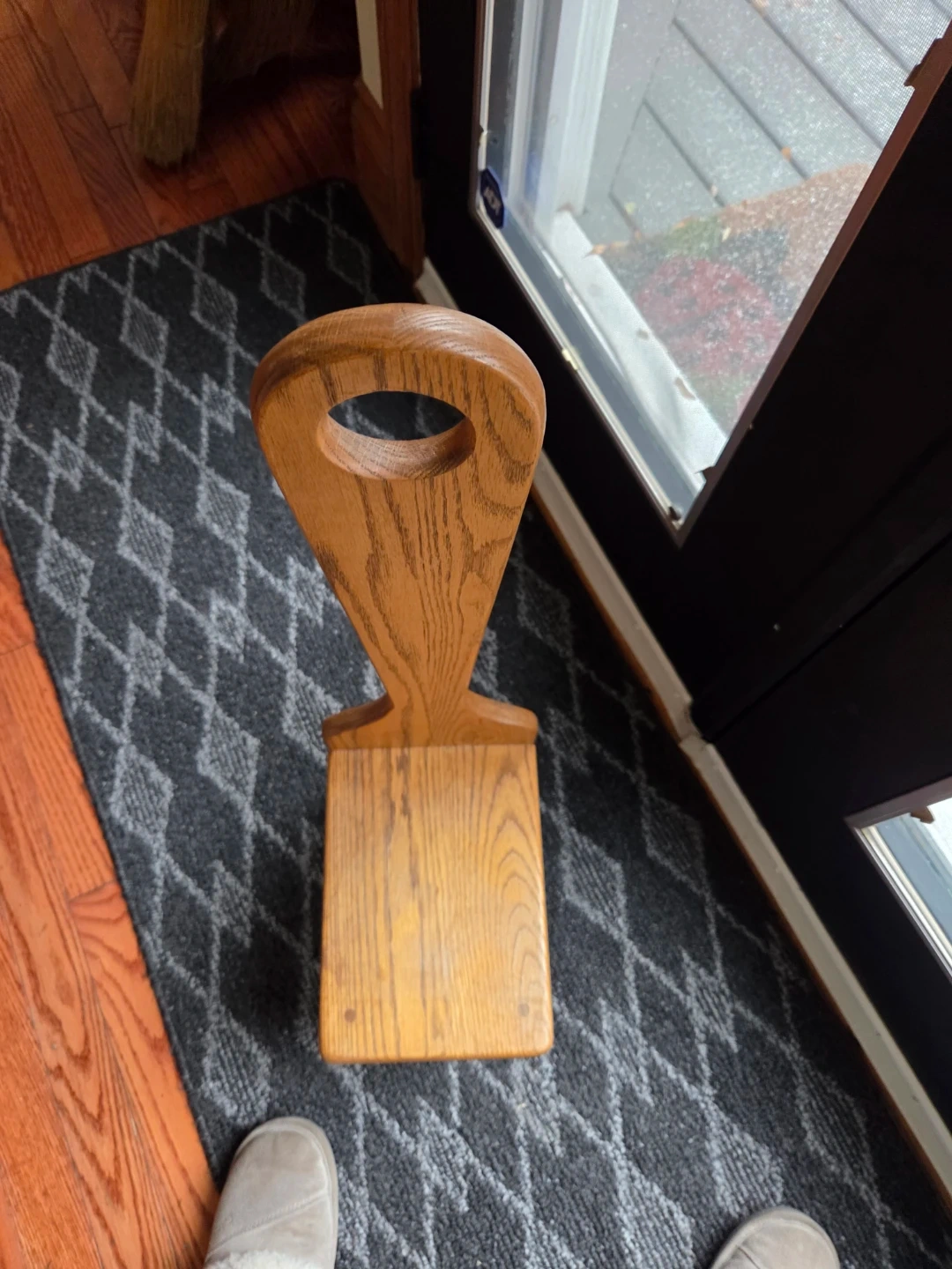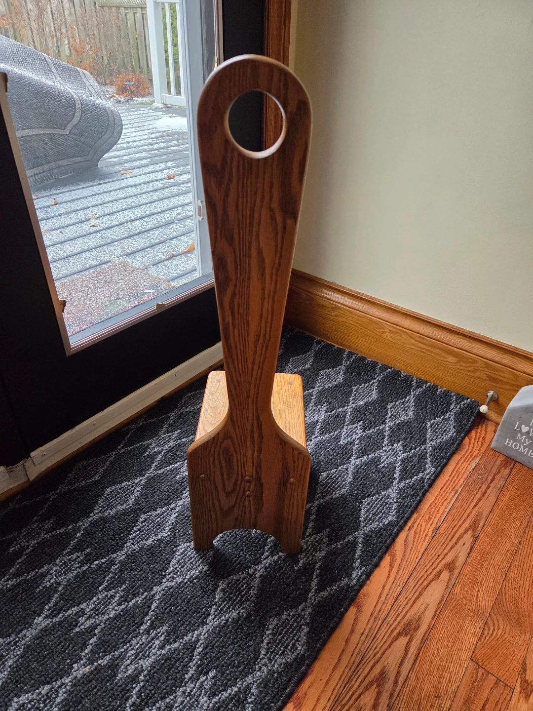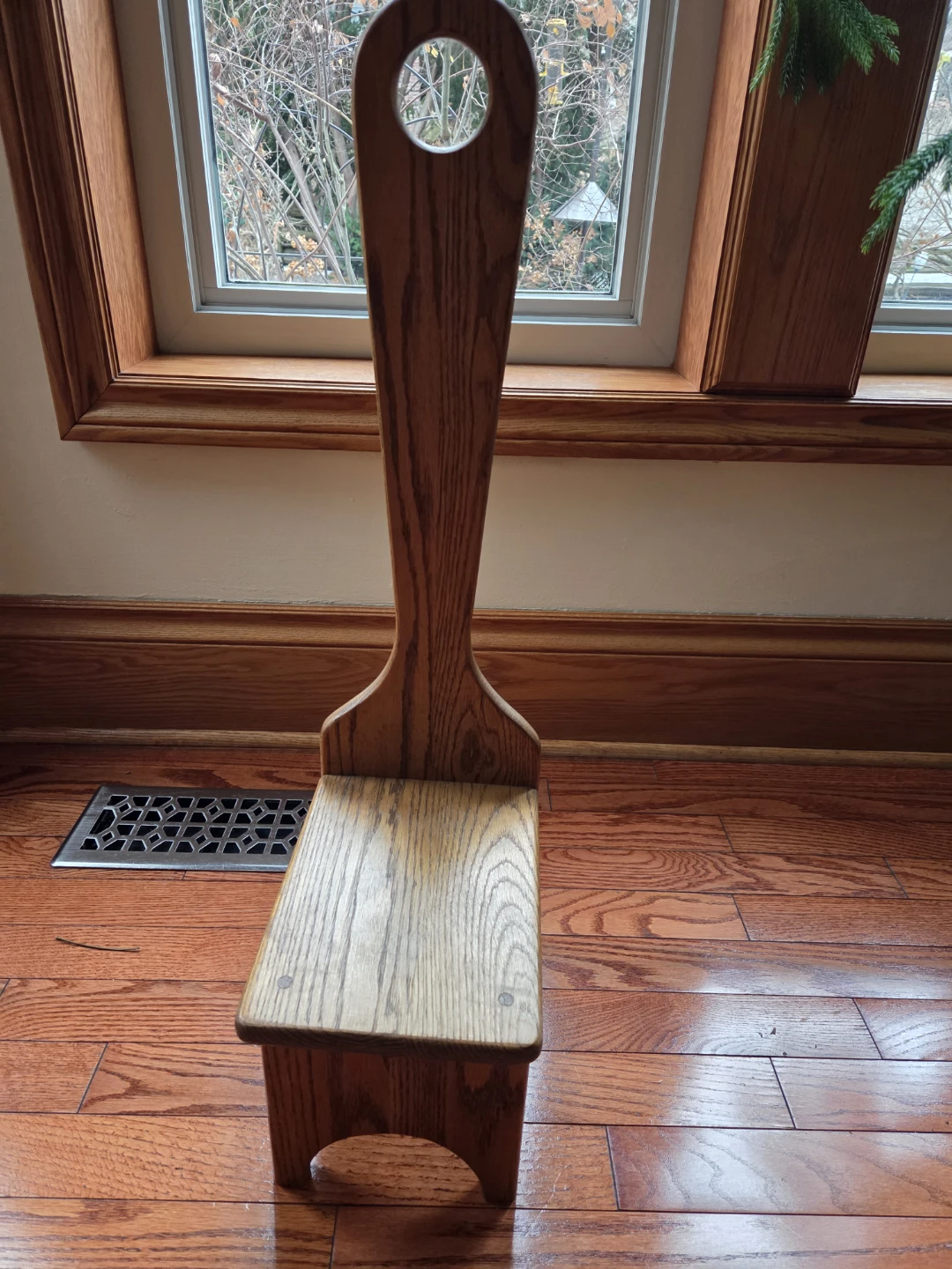 Here's a solid oak handy wooden step stool with a built-in handle!
