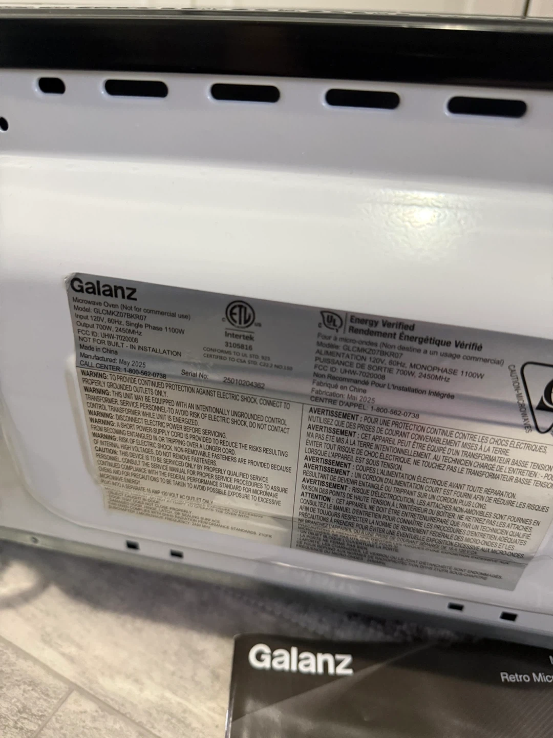 Description: Galanz Model #GLCMKZ07BKR07 New in Box!