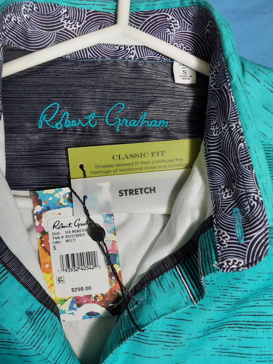 Designer Robert Graham, sea monster long sleeve shirt Small. Cash