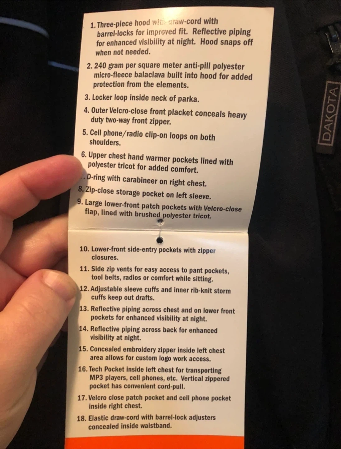 - Upper chest hand warmer pockets
